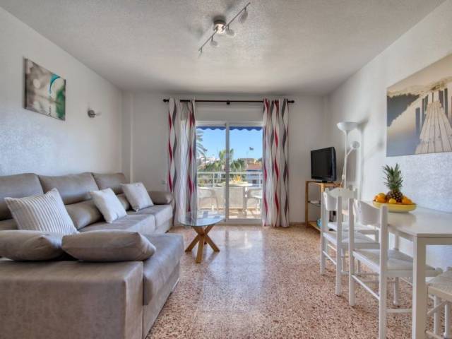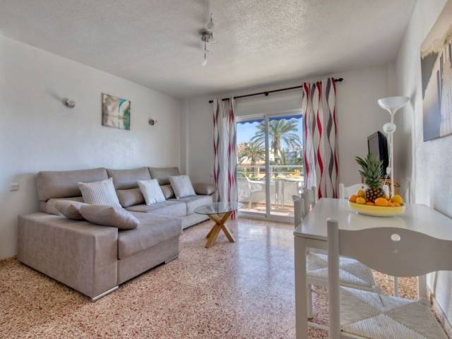Apartamento de 3 estancias 68 m2 en el 3° piso. Con mobiliario funcional: salón-comedor con TV satélite y TV digital (pantalla plana), aire acondicionado. Salida al balcón. 1 dorm. con 1 cama de matrimonio y aire acondicionado. 1 dorm., pequeño con 2 camas y aire acondicionado. Cocina (horno, microondas, cafetera eléctrica). Ducha/WC. Calefacción eléctrica. Balcón grande. Muebles de terraza. Vista a la piscina y al jardín. El alojamiento dispone de: lavadora, caja fuerte. Internet (Wifi, gratis). Plaza de aparcamiento (vallada). Permitido máximo 1 mascota / perro. AT-443227-A