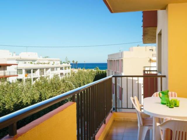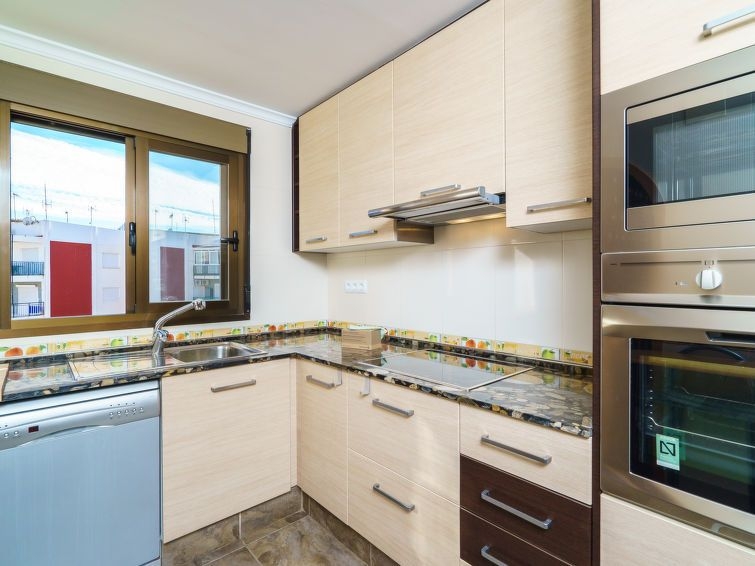 Apartamento de 4 estancias 76 m2 en el 4° piso. Con mobiliario funcional: salón-comedor con TV digital y DVD. Salida al balcón. 2 dorm. dobles, cada habitación con ventilador. Salida al balcón. 1 dorm. con 1 cama de matrimonio. Salida al balcón. Cocina (horno, lavavajillas, X placas de vitrocerámica, microondas, congelador). Baño/bidet/WC, ducha/WC. Calefacción no en todas las estaciones. Balcón 8 m2. Muebles de terraza. Vista al mar. El alojamiento dispone de: cuna. Internet (Wifi, gratis). Plaza de aparcamiento. AT-421610-A