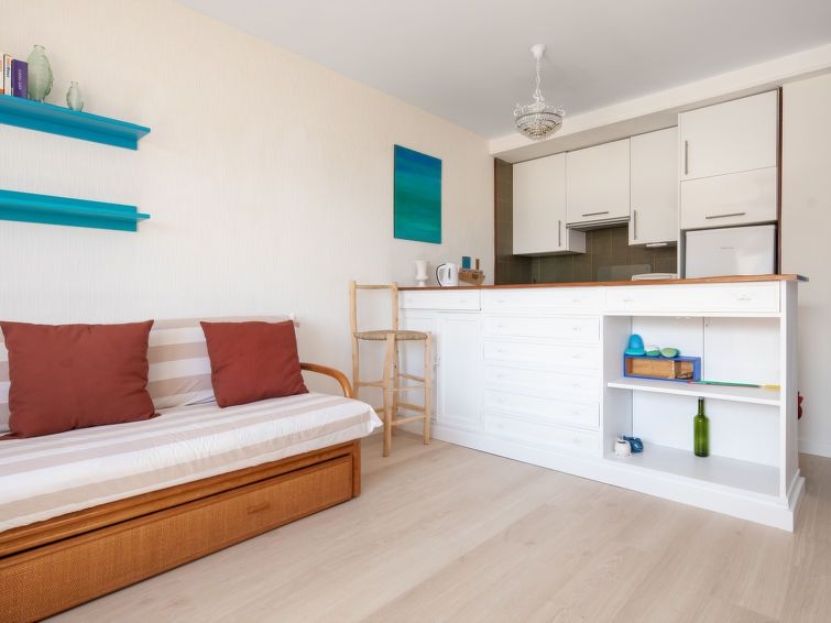 "Montanar Mar", apartamento de 2 estancias 40 m2. Espacioso y luminoso, con mobiliario confortable y agradable: salón-comedor con TV satélite, TV digital y ventilador. 1 dorm. con 1 cama de matrimonio (135 cm, 190 cm de longitud), aire acondicionado. Pequeña cocina (horno pequeño, 3 placas de vitrocerámica, tostadora, microondas, congelador, cafetera eléctrica). Baño/bidet/WC. Aire acondicionado, aire caliente. Calefacción no en todas las estaciones. El alojamiento dispone de: lavadora, plancha, secador de pelo. A tener en cuenta: apartamento para no fumadores. 1 mascota / perro. A tener en cuenta: el edificio dispone de tendedero colectivo, arriba en la azotea. VT-488382-A