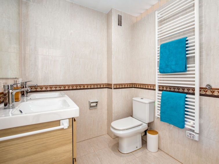 Casa de apartamentos "Cofisa". Lugar tranquilo, a 30 m del mar. Comunitario: jardín (vallado) con césped y plantas, terreno con hierba, piscina (15 x 6 m, Disponible por temporada: 01.Ene. - 31.Dic. horario piscina: 09:00-15:00 y 17:00-00:00) con escalera interior. Piscina para niños, ducha exterior. En el inmueble: ascensor. Tienda, restaurante, playa de arena 400 m. Apartamento de 2 estancias 90 m2 en el 5° piso. Espacioso y luminoso, con mobiliario muy confortable y de buen gusto: salón-comedor con 1 cama-armario de matrimonio, TV satélite, TV digital, DVD y ventilador. Salida al balcón. 1 dorm. con 1 cama doble y ventilador. Salida al balcón. Cocina abierta (horno, lavavajillas, 4 placas de vitrocerámica, microondas, congelador, cafetera eléctrica). Ducha/WC. Calefacción eléctrica. 3 balcones. Muebles de balcón. Vista al mar. El alojamiento dispone de: lavadora. Internet (Wifi, gratis). Plaza de aparcamiento (vallada). A tener en cuenta: apartamento para no fumadores. AT-451912-A