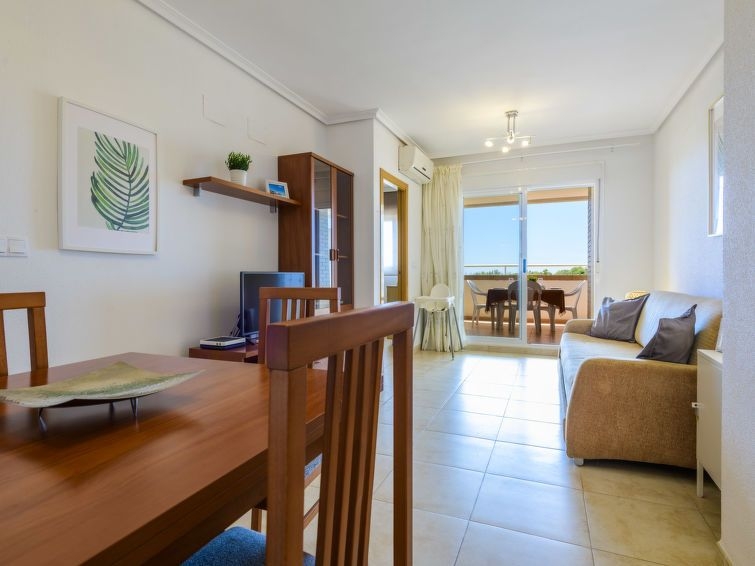 "Playa Ribera", apartamento de 3 estancias 67 m2 en el 3° piso. Con mobiliario funcional y confortable: salón-comedor con mesa de comedor, TV digital, pantalla plana, aire acondicionado y bomba de calor, caliente. Salida a la terraza. 1 dorm. con 1 cama de matrimonio (135 cm, 190 cm de longitud), ducha/bidet/WC. 1 dorm. doble con 2 camas (90 cm, 190 cm de longitud). Cocina (horno, 4 placas de vitrocerámica, tostadora, microondas, congelador, cafetera eléctrica). Baño/bidet/WC. Terraza. Muebles de terraza. Vista al mar. El alojamiento dispone de: lavadora, plancha, trona, cuna, secador de pelo. Internet (Wifi, gratis). Plaza de aparcamiento (cubierto). Adecuado para familias. VT-41319-CS