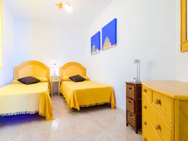 Casa de apartamentos "Edificio Montemar", confortable. Lugar tranquilo, a 600 m del mar, a 600 m de la playa. Tienda de comestibles 300 m, supermercado 350 m, restaurante 500 m. Grupos de jóvenes sólo bajo petición. El propietario no acepta grupos de adolescentes/jóvenes. Vecindario muy sensible a ruidos. Se ruega respetar la tranquilidad y normas de buen comportamiento. "Edificio Montemar", apartamento de 3 estancias 70 m2. Con mobiliario confortable: salón-comedor con 1 sofá-cama, mesa de comedor, TV digital y ventilador. Salida al balcón. 1 dorm. con 2 camas (90 cm, 190 cm de longitud). 1 dorm. con 1 cama (90 cm, 190 cm de longitud). Cocina (4 placas de vitrocerámica, tostadora, hervidor de agua eléctrico, microondas). Baño/ducha/WC. Ningún tipo de calefacción. Vista a las montañas. El alojamiento dispone de: lavadora, plancha, secador de pelo. Internet (Wifi, gratis). 1 mascota / perro. R000000001