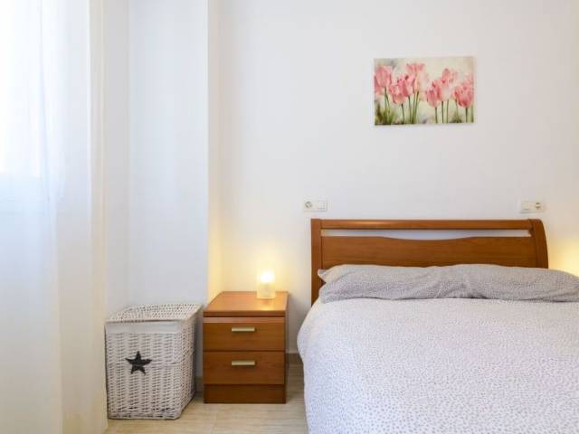 "Vistamar I - Primera Linea", apartamento de 3 estancias 50 m2 en el 4° piso. Con mobiliario funcional y confortable: salón-comedor con mesa de comedor, TV digital, pantalla plana, aire acondicionado y bomba de calor, caliente. Salida a la terraza. 1 dorm. con (135 cm, 190 cm de longitud), 1 cama de matrimonio y ventilador. 1 dorm. con 2 camas (90 cm, 190 cm de longitud), ventilador. Cocina (horno, 4 placas de vitrocerámica, tostadora, microondas, congelador, cafetera eléctrica, Cápsulas de café (Dolce Gusto) extra). Baño/bidet/WC. Calefacción eléctrica. Terraza. Muebles de terraza. Vista al mar y a la localidad. El alojamiento dispone de: lavadora, plancha, secador de pelo. Internet (Wifi, gratis). Plaza de aparcamiento n. 54 junto a la casa. 1 mascota / perro. VT-42623-CS