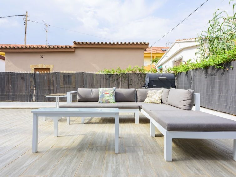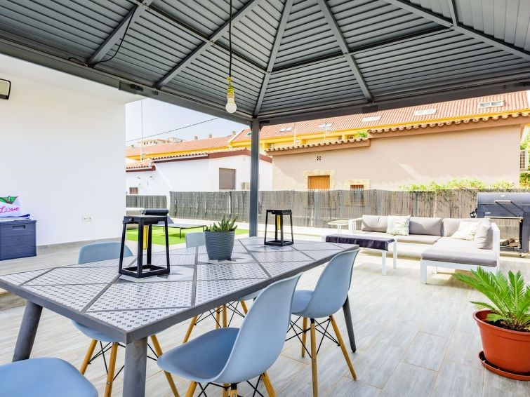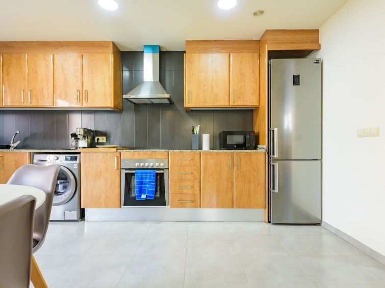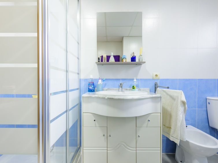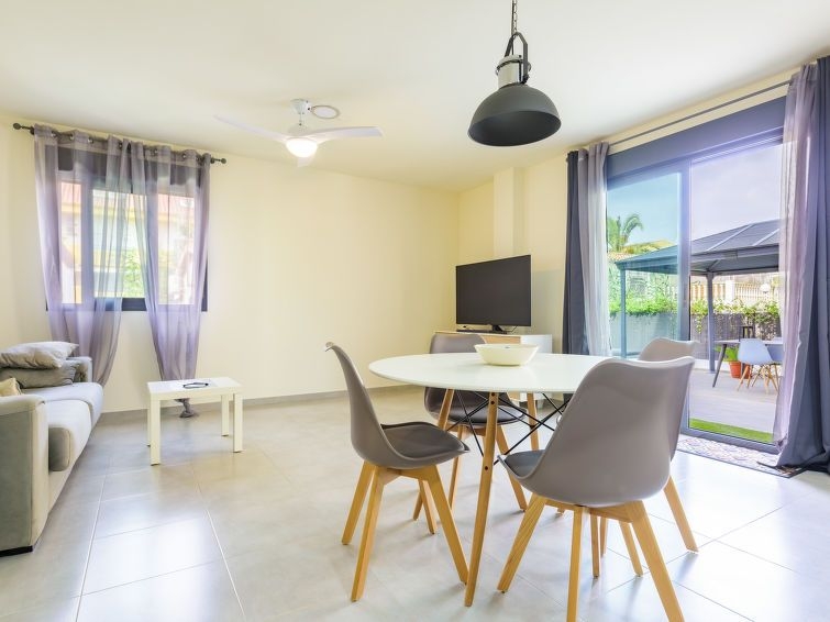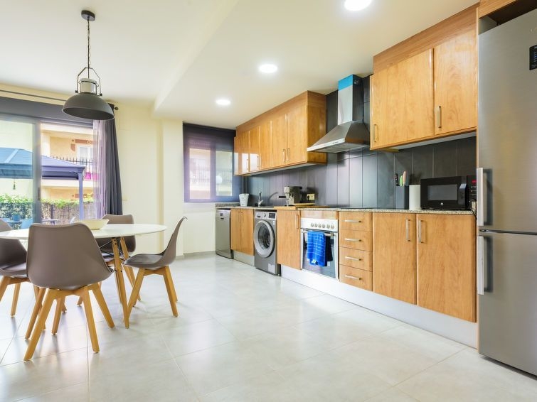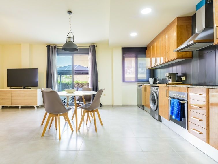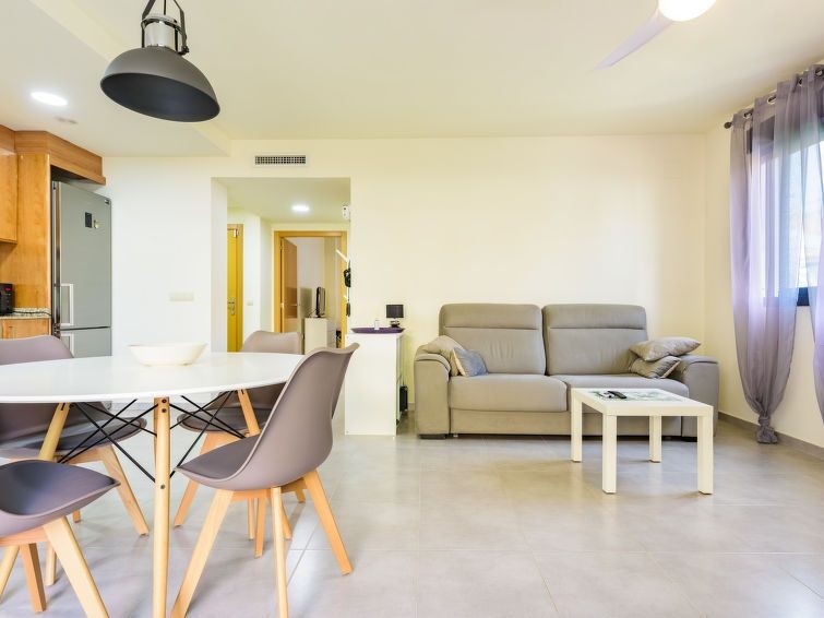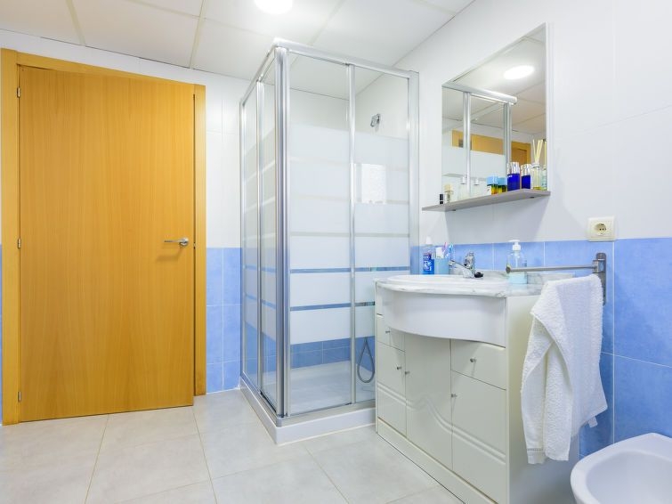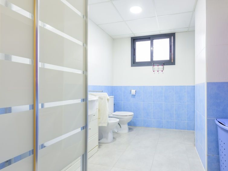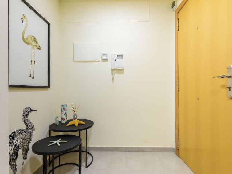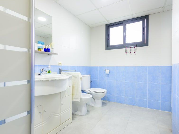 "Puerta del Mediterráneo" estudio 84 m2. Salón-comedor con 1 sofá-cama doble (135 cm, 190 cm de longitud), TV digital, aire acondicionado y bomba de calor, caliente. Salida a la terraza. 1 dorm. con 1 cama de matrimonio (135 cm, 190 cm de longitud). Cocina (lavavajillas, 4 placas de vitrocerámica, tostadora, hervidor de agua eléctrico, microondas, congelador, grill, cafetera eléctrica) con pasa-platos. Ducha/WC. Terraza grande 115 m2. Barbacoa. El alojamiento dispone de: lavadora, plancha, secador de pelo. Internet (Wifi, gratis). Garaje n. 12. R000000001