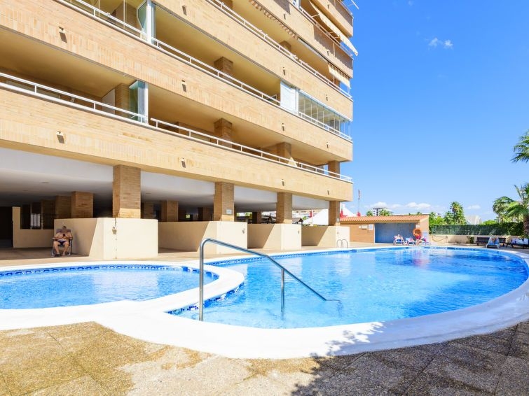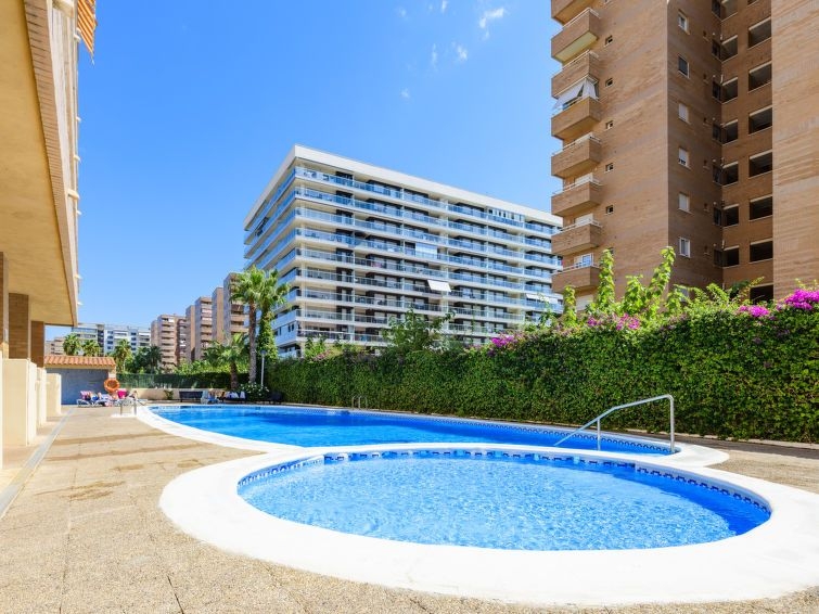 Marina d'Or: Residencia "Sol Park II - Primera Linea". Lugar soleado, a orillas del mar, en primera linea de playa, cruzando la calle. Comunitario: piscina (20 x 10 m, 70 - 270 cm de profundidad, Disponible por temporada: 15.Jun. - 15.Sep.). Piscina para niños, ducha exterior. En el inmueble: ascensor. Aparcamiento (cubierto) junto a la casa. Aparcamiento/garaje para vehículos pequeños/medios. Tienda, supermercado, restaurante, bar, café 100 m. Parque infantil 50 m. Grupos de jóvenes sólo bajo petición. Vecindario muy sensible a ruidos. Se ruega respetar la tranquilidad y normas de buen comportamiento.