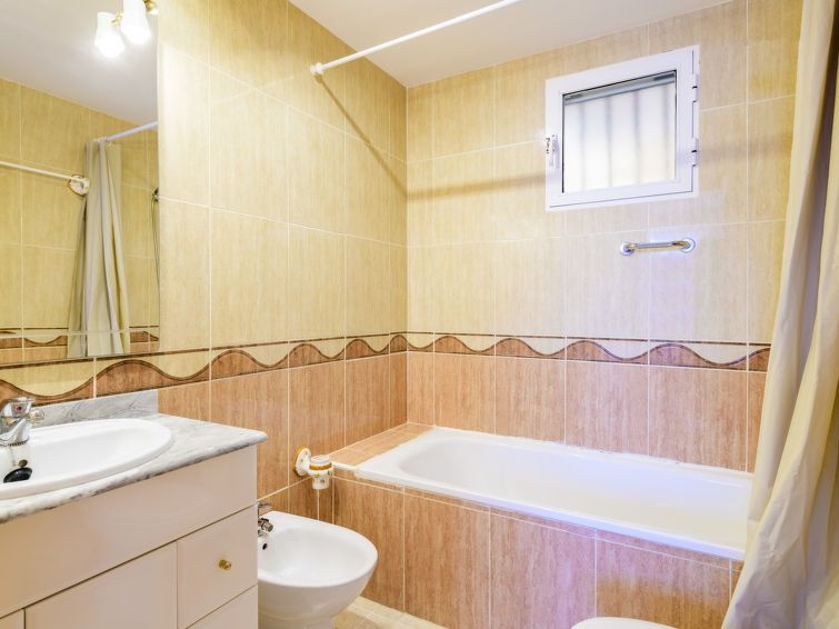 "Sol Park II - Primera línea Marina d'Or", apartamento de 3 estancias 60 m2 en el 2° piso. Luminoso, con mobiliario funcional: salón-comedor con 1 sofá-cama doble, mesa de comedor, TV, aire acondicionado y bomba de calor, caliente. Salida a la terraza. 1 dorm. doble con 1 cama de matrimonio (135 cm, 190 cm de longitud), baño/bidet/WC. 1 dorm. doble con 2 camas (90 cm, 190 cm de longitud). Cocina (4 fogones, horno, tostadora, microondas, congelador, cafetera eléctrica). Ducha/bidet/WC. Calefacción no en todas las estaciones. Terraza. Muebles de terraza. Vista al mar y a la localidad. El alojamiento dispone de: lavadora, plancha, secador de pelo. Plaza de aparcamiento (cubierto). R000000001