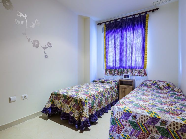 "Mondrian - Marina d'Or", apartamento de 3 estancias 60 m2 en el 1° piso. Con mobiliario funcional y confortable: salón-comedor con 1 sofá-cama doble, mesa de comedor, TV digital, pantalla plana, aire acondicionado y bomba de calor, caliente. Salida a la terraza. 1 dorm. doble con 1 cama de matrimonio (135 cm, 190 cm de longitud), ducha/bidet/WC. 1 dorm. doble con 2 camas (90 cm, 190 cm de longitud). Cocina (horno, 4 placas de vitrocerámica, tostadora, microondas, congelador, cafetera eléctrica). Ducha/bidet/WC. Terraza grande. Muebles de terraza. Vista lateral al mar y a la localidad. El alojamiento dispone de: lavadora, plancha, secador de pelo. Plaza de aparcamiento n. 1 (sot. 1) (cubierto) junto a la casa. Adecuado para familias. VT-41275-CS
