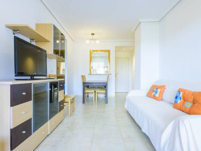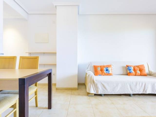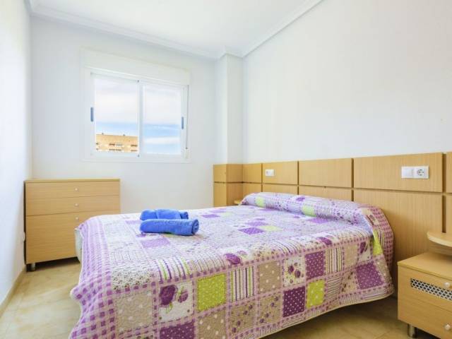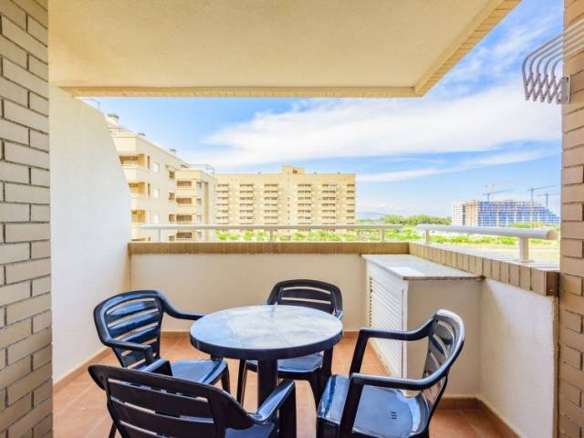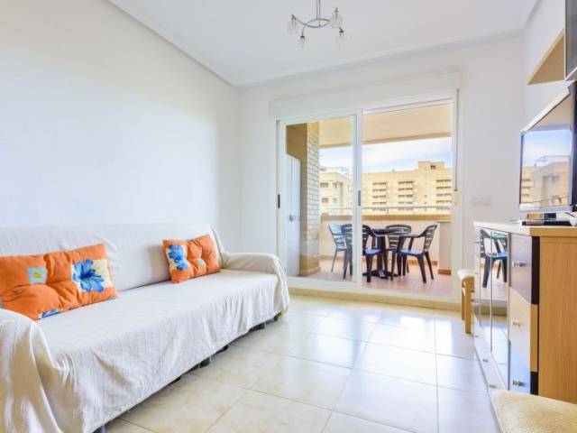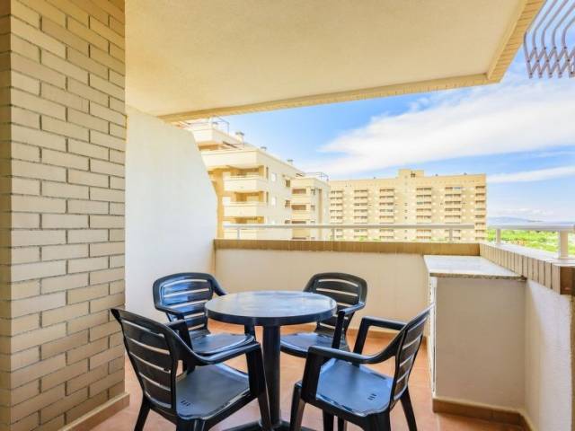 Jardines del Mar I: Casa de apartamentos "Jardines del Mar I", agradable. En la periferia Oropesa del Mar, en el distrito Marina D´or, lugar animado, soleado, a 300 m del mar, a 300 m de la playa, en una calle principal. Comunitario: piscina (20 x 10 m, 200 cm de profundidad, Disponible por temporada: 01.May. - 01.Oct.). En el inmueble: ascensor. Garaje comunitario n. 244. Aparcamiento/garaje para vehículos pequeños/medios. Supermercado 1 km, restaurante 400 m, estación de tren 4 km, playa de arena 400 m. A tener en cuenta: adecuado para familias, adecuado para la tercera edad. Autopista 900 m de la casa. Calle principal 300 m de la casa. Vías del tren 3 km de la casa. Discoteca 300 m de la casa. "Jardines del Mar I", apartamento de 3 estancias 65 m2 en el 5° piso. Luminoso, con mobiliario confortable y agradable: salón-comedor con TV digital. 1 dorm. con 1 cama doble (135 cm, 190 cm de longitud), calefacción eléctrica. 1 dorm. con 2 camas (90 cm, 190 cm de longitud). Cocina (horno, 4 placas de vitrocerámica, tostadora, hervidor de agua eléctrico, microondas, congelador, grill). Baño/ducha/bidet/WC, ducha hidromasaje. Calefacción eléctrica, aire acondicionado. Vista lateral a las montañas y al paisaje. El alojamiento dispone de: lavadora, plancha, secador de pelo. Plaza de aparcamiento n. 176. Adecuado para familias. 1 mascota / perro. R000000001