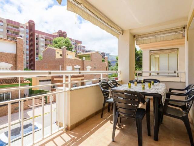 "Vila De Oropesa IV", apartamento de 3 estancias 64 m2 en el 1° piso. Vivienda adecuada para 4 adultos + 1 niño. Con mobiliario funcional y confortable: salón-comedor con 1 sofá-cama, mesa de comedor, TV digital y pantalla plana. Salida a la terraza. 1 dorm. con 1 cama-nido (2 x 90 cm, 190 cm de longitud). 1 dorm. con 1 cama de matrimonio (150 cm, 190 cm de longitud). Cocina (horno, 4 placas de vitrocerámica, tostadora, microondas, congelador, cafetera eléctrica). Ducha/WC. Aire acondicionado, aire caliente. Ningún tipo de calefacción. Suelo de piedra natural. Terraza grande. Muebles de terraza, tumbonas (2). Vista a la localidad. El alojamiento dispone de: lavadora, plancha, secador de pelo. Internet (Wifi, gratis). Plaza de aparcamiento n. 11 (cubierto). Adecuado para familias. 1 mascota pequeña / perro. VT-40836-CS