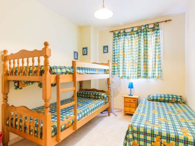 "Mar de Oropesa I", apartamento de 2 estancias 73 m2 en el 1° piso. Con mobiliario funcional y confortable: salón-comedor con mesa de comedor, TV digital, pantalla plana, aire acondicionado y bomba de calor, caliente. Salida a la terraza. 1 dorm. con 1 cama doble (150 cm, 190 cm de longitud). 1 dorm. con 3 camas (90 cm, 190 cm de longitud). Cocina abierta (horno, lavavajillas, 4 placas de vitrocerámica, tostadora, microondas, congelador, cafetera eléctrica). Baño/WC. Terraza. Muebles de terraza. Vista a la localidad. El alojamiento dispone de: lavadora, plancha, secador de pelo. Internet (Wifi, gratis). Garaje n. 27. A tener en cuenta: adecuado para familias. Apartamento para no fumadores. R000000001