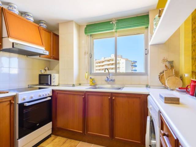 "Paradis", apartamento de 2 estancias 45 m2 en el 9° piso. Con mobiliario funcional y confortable: salón-comedor con mesa de comedor, TV digital y pantalla plana. Salida a la terraza. 1 dorm. con 3 camas (90 cm, 190 cm de longitud). Cocina (horno, 4 placas de vitrocerámica, microondas, cafetera eléctrica). Baño/WC. Calefacción eléctrica. Calefacción no en todas las estaciones. Terraza. Muebles de terraza. Vista bonita al mar y a la localidad. El alojamiento dispone de: lavadora, plancha, secador de pelo. Internet (Wifi, gratis). A tener en cuenta: apartamento para no fumadores. R000000001