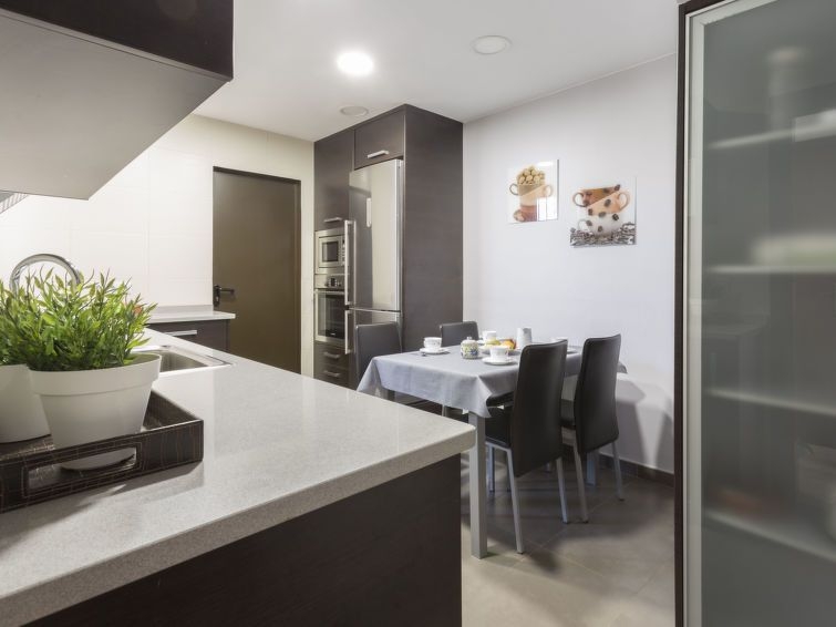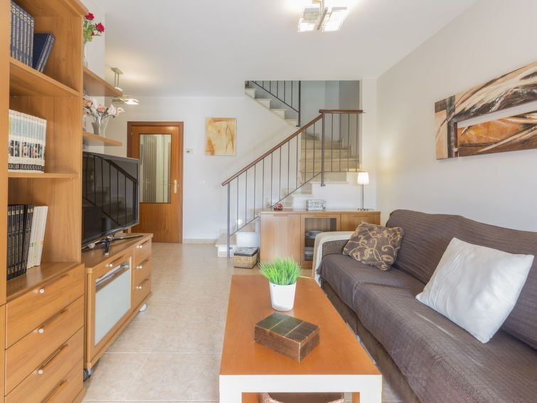 Casa adosada 4 estancias 88 m2 en 2 plantas. Con mobiliario confortable y agradable: salón-comedor con mesa de comedor, TV digital, calefacción de gas, aire acondicionado y bomba de calor, caliente. Salida a la terraza. Cocina (lavavajillas, 3 Placas de inducción, microondas, congelador, cafetera eléctrica). Ducha/WC. Planta superior: 1 dorm. con 1 cama de matrimonio (135 cm, 190 cm de longitud). 1 dorm. para niños con 1 cama-nido (2 pers. 2 x 90 cm, 190 cm de longitud). 1 dorm. para niños con 2 camas (90 cm, 190 cm de longitud). Baño/bidet/WC. Terraza grande 20 m2. Muebles de terraza, barbacoa. El alojamiento dispone de: lavadora, plancha, cuna, secador de pelo. Internet (Wifi, gratis). A tener en cuenta: adecuado para familias. TV solamente ES. HUTG051703