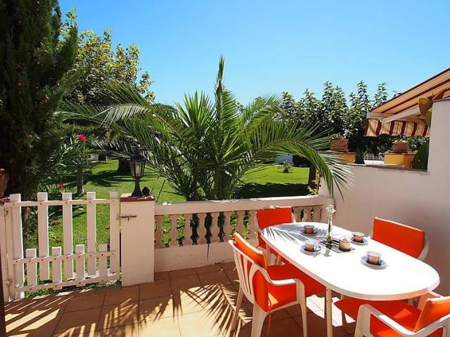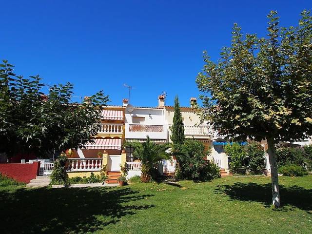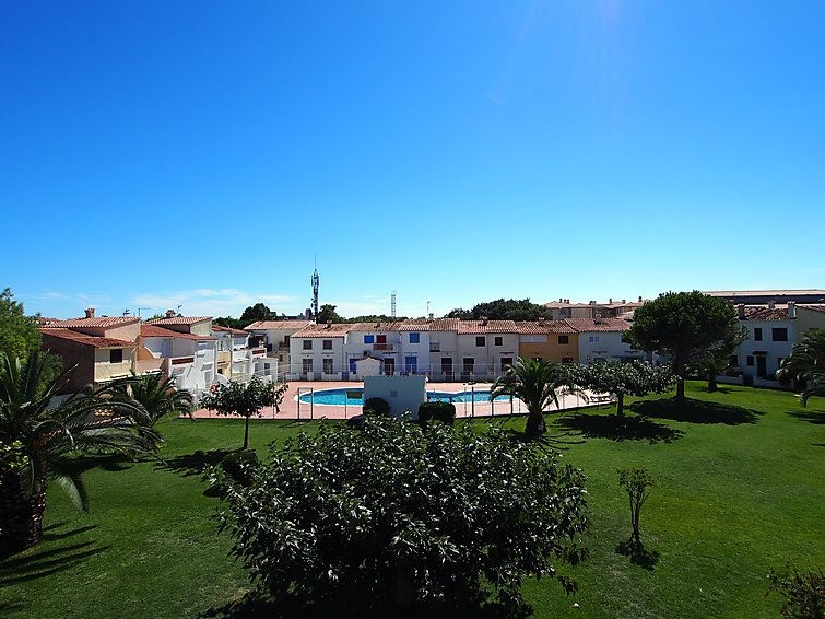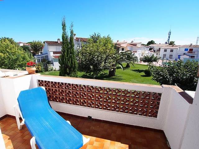 Casa adosada "Triangulo", sencilla de 2 plantas. En el barrio de Puigmal, a 2.5 km del centro de Empuriabrava, lugar tranquilo, soleado area residencial (villas), zona con poco tráfico, a 3 km del mar. Comunitario: jardín grande, cuidado (vallado) con césped y árboles, piscina (12 x 8 m, 180 cm de profundidad, Disponible por temporada: 01.Jun. - 30.Sep.). Piscina para niños. Tienda de comestibles 400 m, supermercado 350 m, restaurante 400 m, bar 350 m, panadería 500 m, parada de autobús 1 km, playa de arena "Empuriabrava" 3 km. Puerto deportivo 3 km, campo de golf 12 km, tenis 550 m, minigolf 2 km, caminos para bicicletas 1 km. Atracciones en los alrededores: Túnel del viento Empuriabrava 1 km, Parque Acuático Roses 6 km, Casino y festival de Perelada 12 km, Museo Dalí Figueres 15 km, Ruïnes de Empuries 21 km, Monasterio de Sant Pere de Rodes 23 km. El acceso al jardín es por dos escalones.