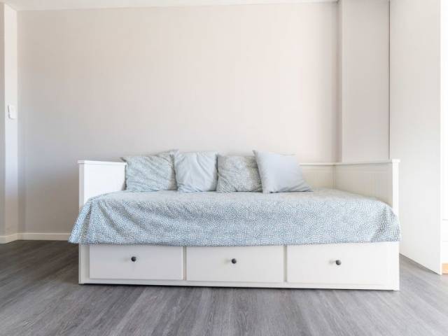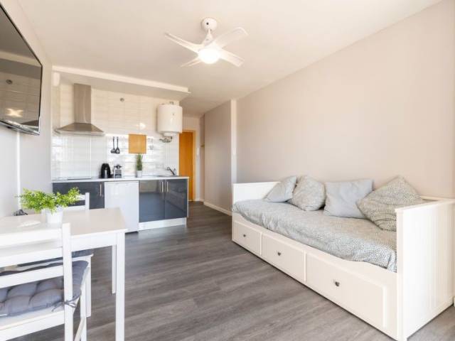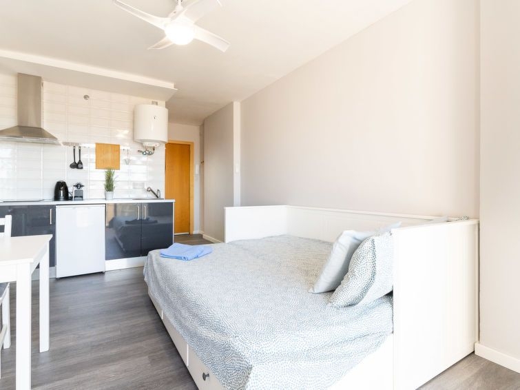 Estudio 25 m2 en el 11° piso. Con mobiliario confortable: salón-dormitorio con 1 sofá-cama doble (2 x 90 cm, 190 cm de longitud), TV digital, aire acondicionado, ventilador y bomba de calor, caliente. Salida al balcón, orientación oeste. Rincón-cocina (2 placas de vitrocerámica, hervidor de agua eléctrico, microondas, cafetera eléctrica). Ducha/WC. Balcón pequeño. Muebles de balcón. El alojamiento dispone de: plancha, secador de pelo. Internet (Wifi, gratis). A tener en cuenta: 1 mascota / perro. TV solamente ES. HUTG-063433
