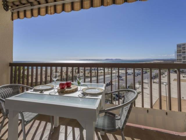 Apartamento de 2 estancias 47 m2, orientación suroeste. Reformado, con mobiliario confortable y agradable: salón-comedor con 1 sofá-cama doble, mesa de comedor, TV satélite, aire acondicionado y bomba de calor, caliente. Salida a la terraza, orientación sur y orientación oeste. 1 dorm., pequeño con 1 cama de matrimonio (135 cm). Cocina abierta (lavavajillas, 2 placas de vitrocerámica, tostadora, hervidor de agua eléctrico, microondas, congelador, cafetera eléctrica). Baño/WC. Terraza grande 8 m2. Muebles de terraza. Vista panorámica espléndida al mar. El alojamiento dispone de: lavadora. Garaje n. 176. A tener en cuenta: aparcamiento para coches pequeños. Permitido máximo 1 mascota pequeña / perro. TV solamente FR. HUTG043953