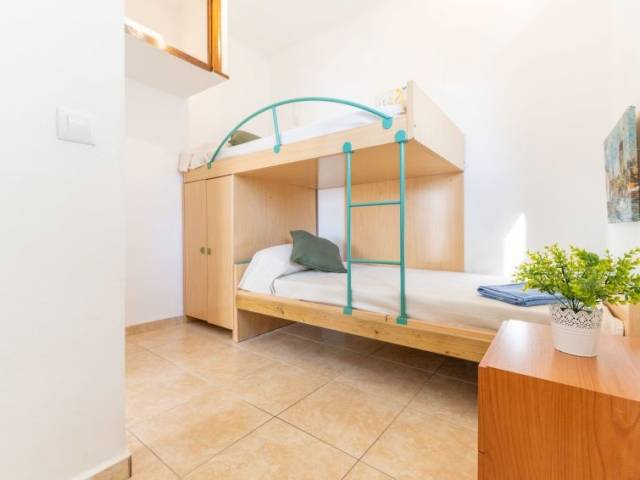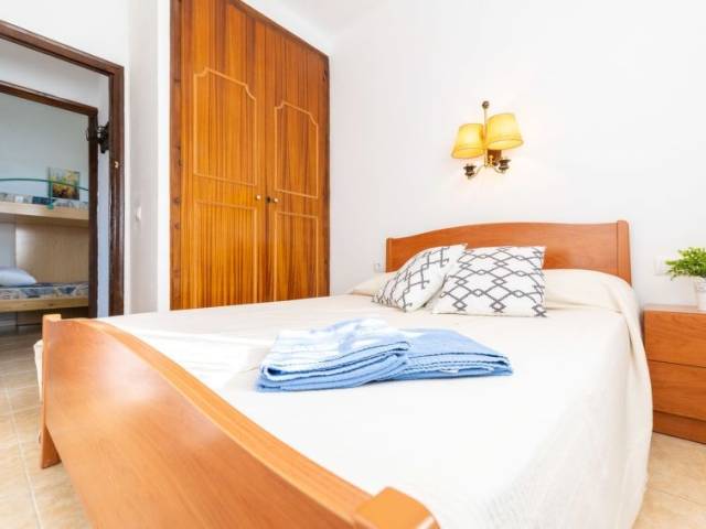 Apartamento de 3 estancias 40 m2, en planta superior. Con mobiliario confortable y agradable: salón-comedor con mesa de comedor, TV satélite, aire acondicionado, ventilador y bomba de calor, caliente. Salida a la terraza. 1 dorm. con 2 camas (90 cm, 190 cm de longitud), ventilador. 1 dorm. con 1 cama de matrimonio (145 cm, 190 cm de longitud), ventilador. Cocina (4 fogones, lavavajillas, tostadora, hervidor de agua eléctrico, microondas, congelador, cafetera eléctrica). Ducha/WC. Terraza 35 m2. Muebles de terraza, barbacoa. El alojamiento dispone de: lavadora, plancha, secador de pelo. Internet (Wifi, gratis). A tener en cuenta: TV solamente DE, FR, ES. Sin ascensor. HUTG-068699