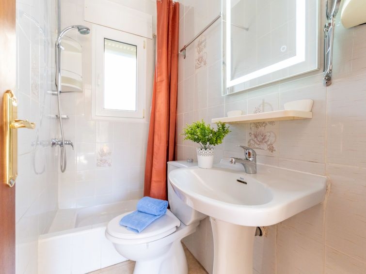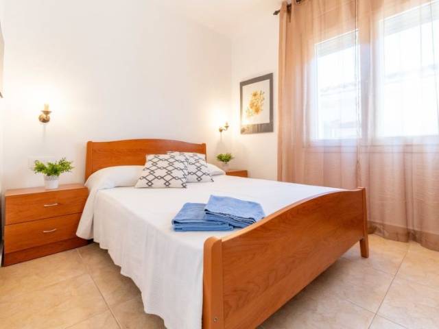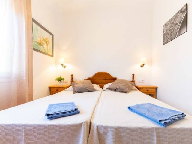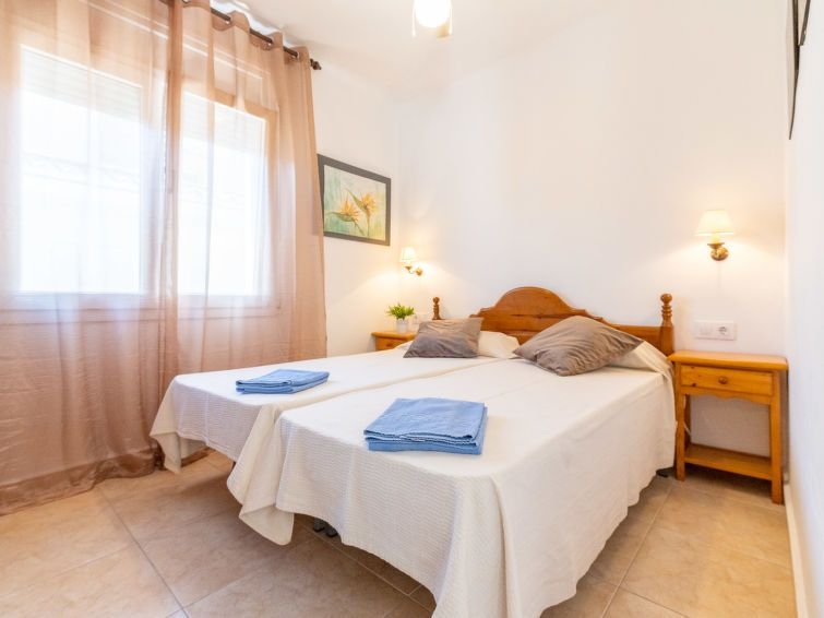 Apartamento de 3 estancias 40 m2, en la planta baja. Con mobiliario confortable y agradable: salón-comedor con mesa de comedor, TV satélite, aire acondicionado, ventilador y bomba de calor, caliente. Salida a la terraza. 1 dorm. con 2 camas (80 cm, 190 cm de longitud), ventilador. 1 dorm. con 1 cama de matrimonio (140 cm, 190 cm de longitud), ventilador. Cocina abierta (4 fogones, lavavajillas, tostadora, hervidor de agua eléctrico, microondas, congelador, cafetera eléctrica). Ducha/WC. Terraza 28 m2. Muebles de terraza, barbacoa. El alojamiento dispone de: lavadora, plancha, secador de pelo. Internet (Wifi, gratis). A tener en cuenta: TV solamente DE, FR, ES. HUTG-068699