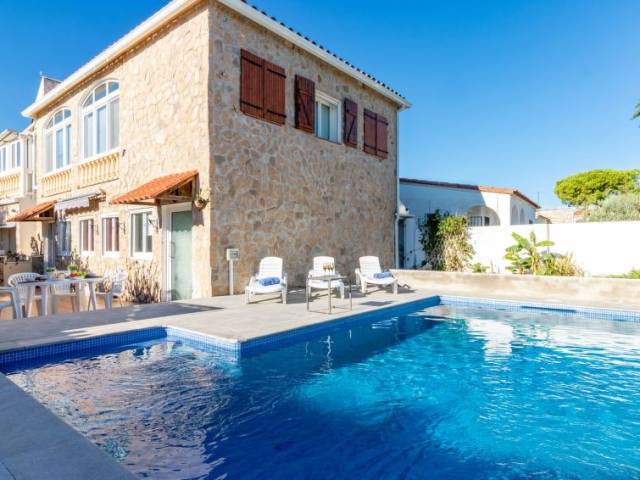 Casa de dos viviendas "Chavicoto", bonita, confortable de 2 plantas. En el barrio de Requesens, a 400 m del centro de Empuriabrava, lugar tranquilo, soleado area residencial (villas), zona con poco tráfico, a 900 m del mar, a 120 m del canal. Privado: piscina (7 x 3 m, Disponible por temporada: 01.Abr. - 30.Oct.). Terraza (30 m2), muebles de jardín, barbacoa, aparcamiento junto a la casa en el mismo terreno. Tienda, supermercado 800 m, restaurante 900 m, bar 800 m, café, internet café 900 m, parada de autobús 3 km, playa de arena "Empuriabrava" 900 m. Puerto deportivo 1.5 km, campo de golf (14 hoyos) 5 km, tenis 2 km, minigolf 1.8 km, caminos para bicicletas 500 m. Atracciones en los alrededores: Parque acuático Roses 6 km, Museo Dalí Figueres 15 km, Ruïnas de Empuries 21 km, Castillo y Festival de Perelada 12 km, Aeródromo y túnel del viento 2 km, Monasterio de Sant Pere de Rodes 23 km. A tener en cuenta: sin ascensor.