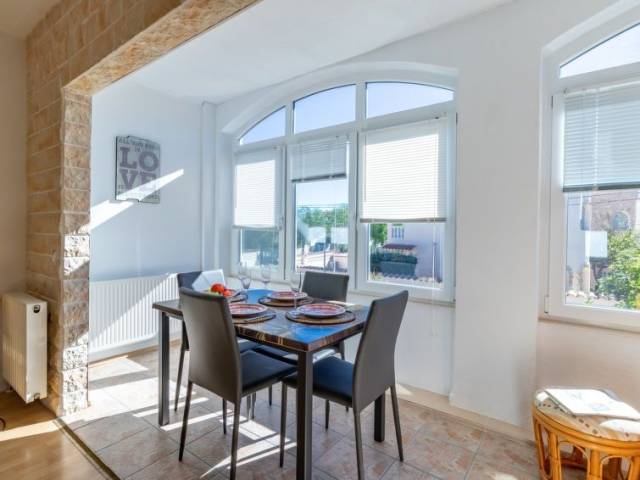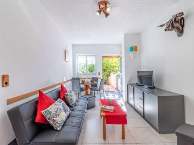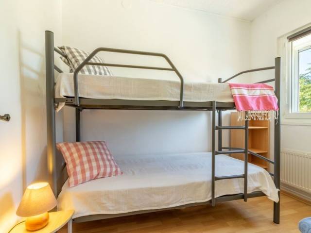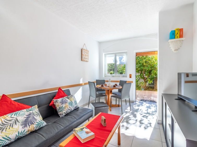 Casa 6 estancias 140 m2 en 2 plantas. Luminoso, con mobiliario confortable y bonito: salón-comedor con mesa de comedor, TV satélite, aire acondicionado y bomba de calor, caliente. 1 dorm., grande con 1 cama de matrimonio (2 x 90 cm, 190 cm de longitud), ducha/WC. 1 dorm. con 2 camas (90 cm). Rincón-cocina (lavavajillas, 3 placas de vitrocerámica, microondas, congelador, cafetera eléctrica). Baño/WC. Planta superior: (escalera exterior) salón-comedor con ventanal con mesa de comedor, TV satélite, aire acondicionado y bomba de calor, caliente. 1 dorm. con 1 cama de matrimonio (135 cm). 1 dorm. con 1 x 2 literas. Pequeña cocina (lavavajillas, 3 placas de vitrocerámica, microondas, congelador, cafetera eléctrica). Ducha/WC. Vista a la piscina y a la localidad. El alojamiento dispone de: lavadora. Internet (Wifi, gratis). Plaza de aparcamiento (2 Coches). A tener en cuenta: TV solamente FR, DE, EN. HUTG005843