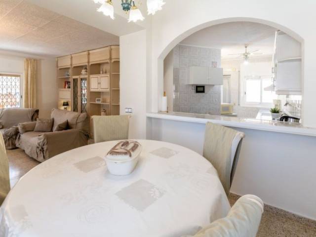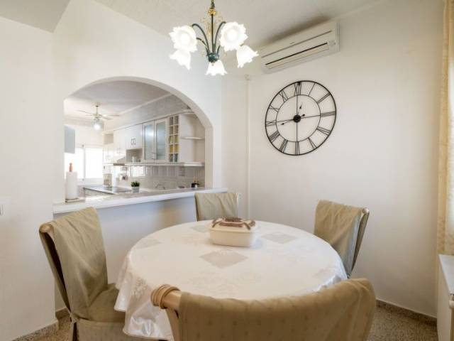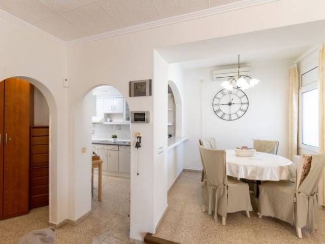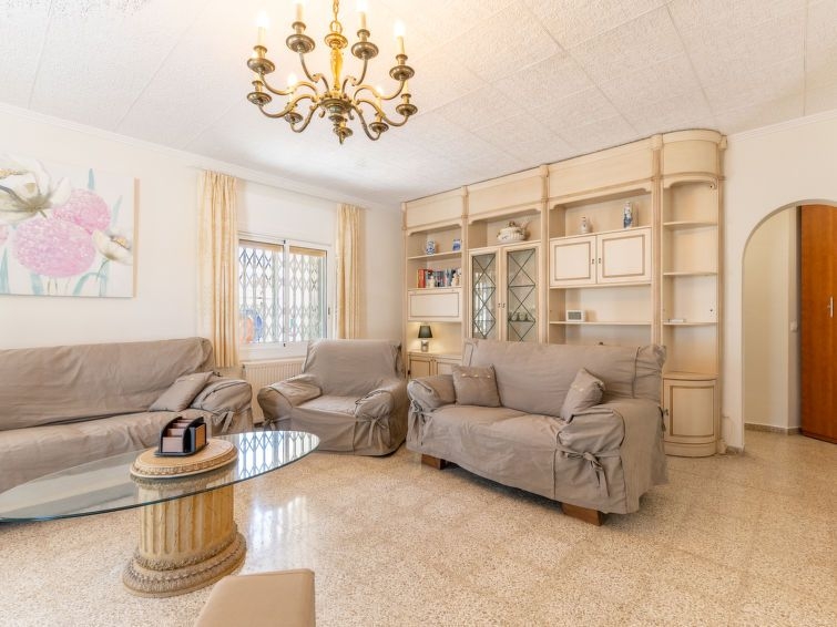 Casa 5 estancias 102 m2 en 2 plantas. Espacioso y luminoso, con mobiliario funcional y confortable: salón-comedor con mesa de comedor y TV satélite. Salida a la terraza, a la piscina. Salón-dormitorio abierto con 1 sofá-cama (150 cm, 200 cm de longitud), aire acondicionado y bomba de calor, caliente. 1 dorm. con 1 cama (100 cm, 200 cm de longitud), aire acondicionado y bomba de calor, caliente. 1 dorm. con 1 cama de matrimonio (150 cm, 190 cm de longitud). Cocina (horno, lavavajillas, 1 placas de vitrocerámica, 3 fuegos, tostadora, hervidor de agua eléctrico, microondas, congelador, cafetera eléctrica). Ducha/WC. Planta superior: 1 dorm. con 1 cama de matrimonio (140 cm, 200 cm de longitud), ducha/WC, aire acondicionado y bomba de calor, caliente. Terraza grande. Muebles de terraza, barbacoa, tumbonas. Vista a la piscina. El alojamiento dispone de: lavadora, plancha, secador de pelo. Internet (Wifi, gratis). Plaza de aparcamiento. A tener en cuenta: casa para no fumadores. 1 mascota / perro. TV solamente DE, NL. Sin ascensor. No hay conexión interna entre las plantas. R00000001