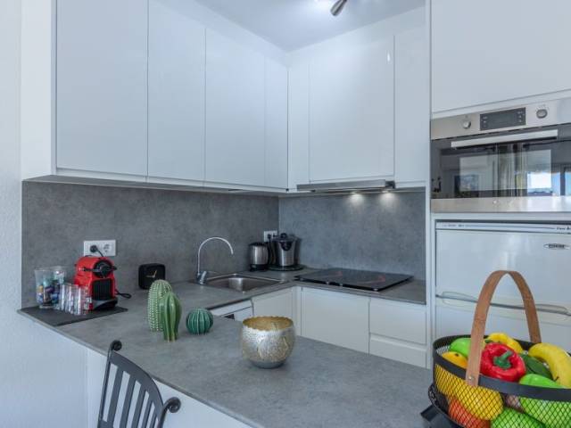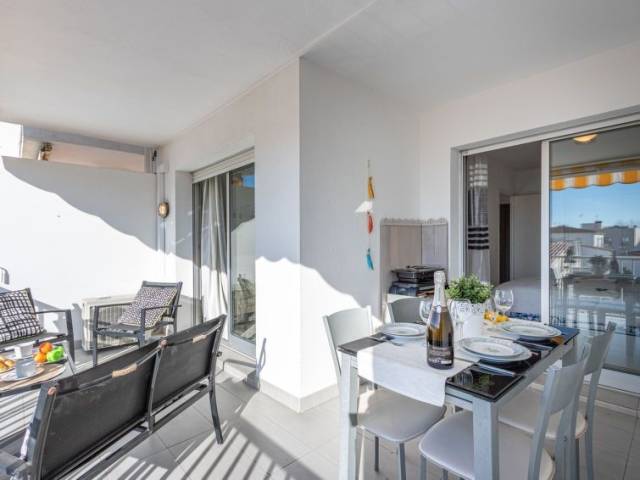 Apartamento de 3 estancias 50 m2. Luminoso, con mobiliario confortable y moderno: salón-comedor con 1 sofá-cama doble, mesa de comedor, TV satélite, aire acondicionado y bomba de calor, caliente. Salida al balcón. 1 dorm. con 1 cama de matrimonio (150 cm, 190 cm de longitud). Salida al balcón. 1 dorm. con 1 x 2 literas (140 cm, 190 cm de longitud). Cocina (horno, lavavajillas, 3 Placas de inducción, congelador, grill, cafetera eléctrica) con barra americana. Baño/WC, WC separado. Muebles de balcón. Vista a la localidad. El alojamiento dispone de: lavadora, plancha, secador de pelo. Internet (Wifi, gratis). A tener en cuenta: apartamento para no fumadores. 1 mascota pequeña / perro. TV solamente FR. HUTG054784