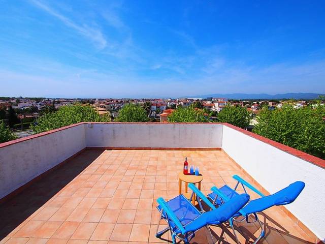 Casa de dos viviendas "Port Banyuls", de 2 plantas. En el barrio de Port Banyuls, a 1.3 km del centro de Empuriabrava, lugar tranquilo, soleado, a 2 km del mar, en una calle principal. En el complejo: Wifi, lavadora. Tienda de comestibles, supermercado, centro comercial, restaurante, bar, café 500 m, playa de arena "Empuriabrava" 2 km. Puerto deportivo 1.8 km, tenis 1.3 km, minigolf 900 m, rutas de senderismo desde la casa 1 km, caminos para bicicletas 1 km. Atracciones en los alrededores: Centro Aeródromo y túnel del viento 1 km, Parque Acuático Roses 6 km, Casino y festival de Perelada 12 km, Museo Dalí de Figueres 15 km, Ruïnes de Sant Martí de Empuries 21 km, Monasterio de Sant Pere de Rodes 23 km. A tener en cuenta: Se pueden reservar alojamientos adicionales. Apartamento de 3 estancias 75 m2 en 3 plantas en el 1° piso. Luminoso, con mobiliario funcional y confortable: salón-comedor con TV digital y pantalla plana. Salida a la terraza. Cocina abierta (horno, lavavajillas, 4 placas de vitrocerámica, microondas). WC separado. Ningún tipo de calefacción. Planta superior: 1 dorm. con 1 cama de matrimonio. 1 dorm. con 1 cama-nido (2 pers.). Baño/bidet/WC. Terraza 20 m2. Muebles de terraza. El alojamiento dispone de: lavadora. Internet (Wifi, gratis). A tener en cuenta: permitido máximo 1 mascota / perro. TV solamente ES. HUTG017576