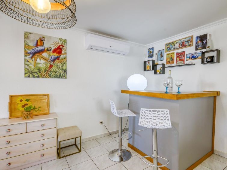 Casa 4 estancias 80 m2. Salón-comedor con mesa de comedor, TV satélite, TV digital, aire acondicionado y bomba de calor, caliente. Salida a la terraza, a la piscina. 1 dorm. con 1 cama de matrimonio (180 cm, 200 cm de longitud), ducha/WC, aire acondicionado y bomba de calor, caliente. 1 dorm. con 1 cama de matrimonio (140 cm), aire acondicionado y bomba de calor, caliente. Habitación de paso con 1 sofá-cama doble (130 cm, 160 cm de longitud). Salida a la terraza. Cocina abierta (horno, lavavajillas, 3 placas de vitrocerámica, microondas, congelador, cafetera eléctrica) con barra americana. Ducha/WC. Muebles de terraza, barbacoa. Vista bonita al canal. El alojamiento dispone de: lavadora, plancha. Internet (Wifi, gratis). Plaza de aparcamiento junto a la casa. A tener en cuenta: casa para no fumadores. TV solamente FR, DE, ES. HUTG049004