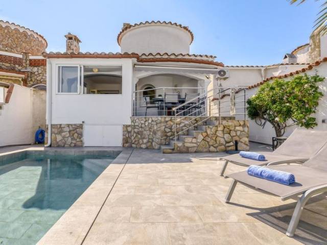 Casa al canal: Casa "Sunset", agradable, confortable. A 2 km del centro de Empuriabrava, lugar tranquilo, soleado area residencial (villas), a 2.3 km del mar, junto al canal, en una calle sin salida. Privado: piscina rectangular (5 x 3 m, 110 - 130 cm de profundidad, Disponible por temporada: 01.Jun. - 30.Oct.). Ducha exterior, terraza, muebles de jardín, aparcamiento en el mismo terreno. Tienda, supermercado, restaurante 400 m, bar 700 m, parada de autobús 1.6 km, playa de arena "Empuriabrava" 2.2 km. Puerto deportivo 2.1 km, campo de golf (15 hoyos) 12 km, escuela de vela 2.2 km, tenis 1.1 km, minigolf 800 m, caminos para bicicletas 500 m. Atracciones en los alrededores: Parque Acuático Roses 6 km, Museo Dalí Figueres 15 km, Golf Perelada 12 km, Centro Paracaidismo / Túnel del viento 1 km, Ruïnas de St. Martí de Empúries 21 km, Monasterio de Sant Pere de Rodes 23 km. Grupos de jóvenes sólo bajo petición.