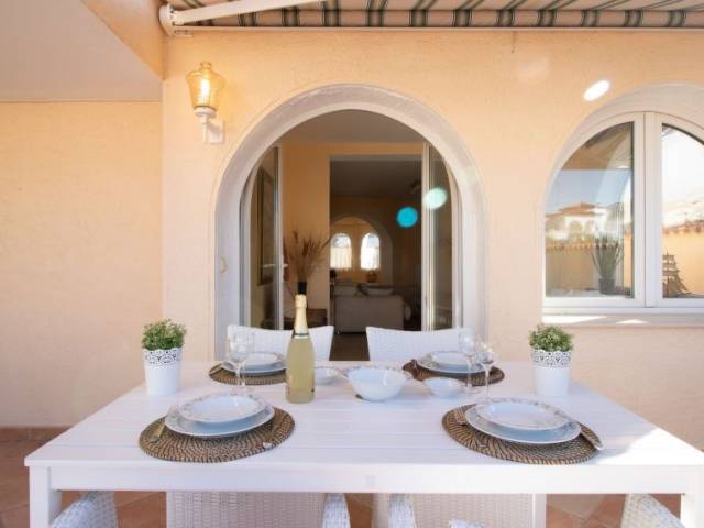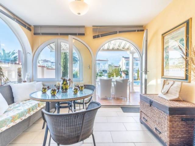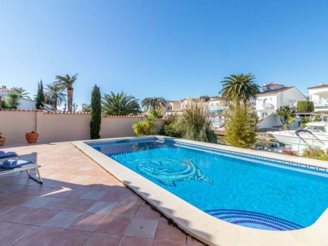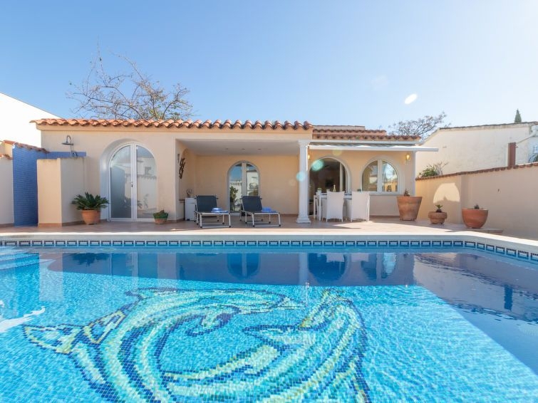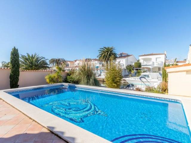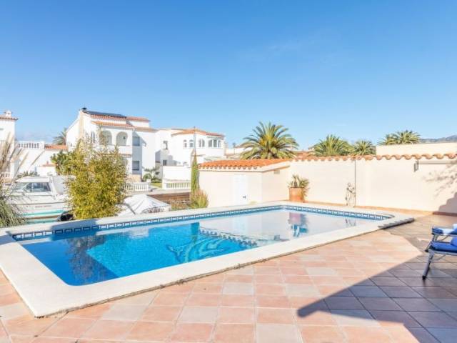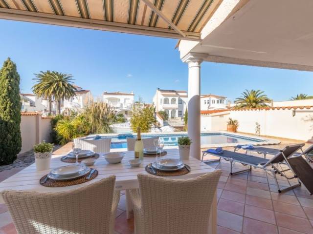 Casa al canal: Casa unifamiliar "Bonica", bonita, confortable, reformada en 2017. En el barrio de Medes, a 1 km del centro de Empuriabrava, lugar tranquilo, soleado area residencial (villas), zona con poco tráfico, a 900 m del mar, junto al canal, en una calle sin salida. Privado: terreno (vallada) con plantas y árboles, piscina rectangular (8 x 4 m, Disponible por temporada: 01.Abr. - 30.Oct.). Ducha exterior, terraza-jardín, porche, muebles de jardín. En el inmueble: aire acondicionado. Aparcamiento en el mismo terreno. Supermercado 1 km, restaurante 400 m, internet café 3 km, playa de arena "La Rubina / Empuriabrava" 900 m. Puerto deportivo 2 km, campo de golf (9 hoyos) 3 km, escuela de surf 1.5 km, escuela de vela 1.5 km, tenis 1.5 km, minigolf 900 m, polideportivo 1 km, rutas de senderismo desde la casa 500 m, caminos para bicicletas 100 m. Atracciones en los alrededores: Parque Acuático Roses 5 km, Museo Dalí Figueres 12 km, Ruinas de Empuries 20 km, Castillo y Festival de Perelada 12 km, Centro de Paracaidismo y Túnel de viento 1 km, Monasterio de Sant Pere de Rodes 23 km. A tener en cuenta: grupos de jóvenes sólo bajo petición. Amarre privado, a demanda.