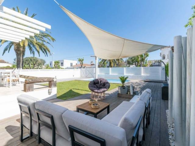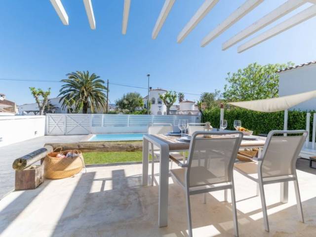 Casa unifamiliar "OTLO", muy moderna, bonita, reformada en 2020. En el barrio de Alberes, a 1.2 km del centro de Empuriabrava, lugar tranquilo, soleado area residencial (villas), zona con poco tráfico, a 1.2 km del mar, a 350 m del canal, a 450 m del río, orientación suroeste. Privado: piscina rectangular (8 x 4 m, 100 - 150 cm de profundidad, Disponible por temporada: 01.May. - 30.Oct.). Ducha exterior, terraza-jardín, porche, muebles de jardín, aparcamiento junto a la casa. Tienda, tienda de comestibles 300 m, supermercado 400 m, restaurante 260 m, bar 300 m, panadería 230 m, parada de autobús 2.8 km, playa de arena "Empuriabrava" 1.2 km. Puerto deportivo 1.8 km, campo de golf (18 hoyos) 15 km, escuela de surf 2 km, escuela de vela 2 km, tenis 2 km, minigolf 1.5 km, centro ecuestre 3 km, rutas de senderismo desde la casa, caminos para bicicletas 400 m. Atracciones en los alrededores: Centro paracaidismo y túnel del viento 2 km, Parque Acuático Roses 10 km, Museo Dalí Figueres 15 km, Castillo de Perelada 12 km, Ruïnas de St. Martí de Empúries 21 km, Monasterio de Sant Pere de Rodes 23 km. El propietario no acepta grupos de adolescentes/jóvenes.