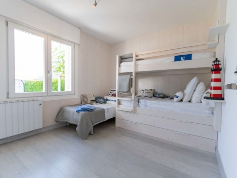 "OTLO", casa 3 estancias 65 m2. Vivienda adecuada para 2 adultos + 3 niños. Luminoso, completamente reformada, con mobiliario moderno y de buen gusto: salón-comedor con mesa de comedor, TV digital, aire acondicionado y bomba de calor, caliente. Salida a la terraza-jardín, a la piscina. 1 dorm. con 1 cama de matrimonio (140 cm, 190 cm de longitud). 1 dorm. para niños con 1 cama (80 cm, 190 cm de longitud), 1 x 2 literas (80 cm, 190 cm de longitud). Cocina abierta (horno, lavavajillas, 3 placas de vitrocerámica, tostadora, hervidor de agua eléctrico, microondas, congelador, cafetera eléctrica). Ducha/WC, WC separado. Terraza-jardín. Muebles de terraza. Vista a la piscina y al jardín. El alojamiento dispone de: lavadora, plancha, cuna, secador de pelo. Internet (Wifi, gratis). A tener en cuenta: casa para no fumadores. TV solamente ES. HUTG063621