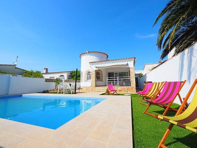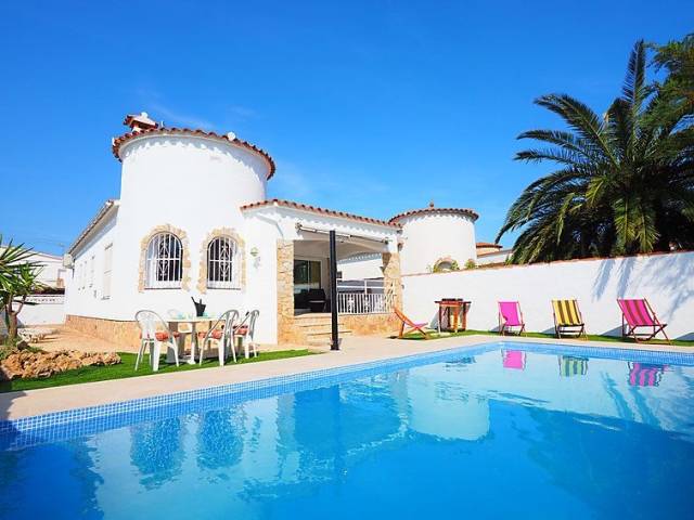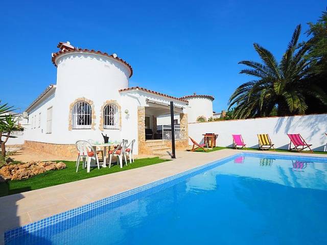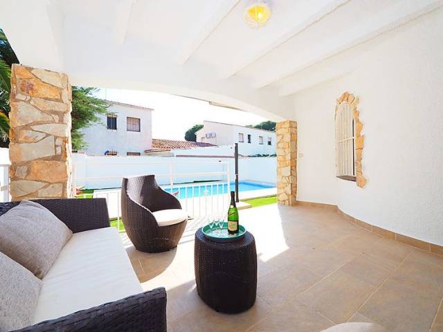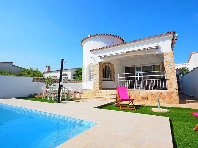 Casa unifamiliar "Alberes", muy moderna, bonita, reformada en 2015. En el barrio de Alberes, a 1.2 km del centro de Empuriabrava, lugar tranquilo, soleado area residencial (villas), zona con poco tráfico, a 1.2 km del mar, a 350 m del canal, a 450 m del río, orientación suroeste. Privado: piscina rectangular (7 x 3 m, Disponible por temporada: 30.May. - 30.Oct.). Ducha exterior, terraza-jardín, porche, muebles de jardín, barbacoa. En el inmueble: aire acondicionado. Aparcamiento, garaje individual. Tienda, tienda de comestibles 300 m, supermercado 400 m, restaurante 260 m, bar 300 m, panadería 230 m, parada de autobús 2.8 km, playa de arena "Empuriabrava" 1.2 km. Puerto deportivo 1.8 km, campo de golf (15 hoyos) 8 km, escuela de surf 2 km, escuela de vela 2 km, tenis 2 km, minigolf 1.5 km, centro ecuestre 3 km, rutas de senderismo desde la casa, caminos para bicicletas 400 m. Atracciones en los alrededores: Centro paracaidismo y túnel del viento 2 km, Parque Acuático Roses 10 km, Museo Dalí Figueres 15 km, Castillo de Perelada 12 km, Ruïnas de St. Martí de Empúries 21 km, Monasterio de Sant Pere de Rodes 23 km. Casa 4 estancias 83 m2, orientación suroeste. Espacioso y luminoso, completamente reformada en 2015, con mobiliario muy confortable y moderno: salón-comedor con mesa de comedor, TV satélite y TV digital (pantalla plana). Salida a la piscina, orientación sur y orientación oeste. 1 dorm. con 1 cama de matrimonio, ducha/WC y aire acondicionado. 1 dorm. con 1 cama de matrimonio y aire acondicionado. 1 dorm. con 2 camas y aire acondicionado. Cocina abierta (horno, lavavajillas, 4 placas de vitrocerámica, microondas, congelador, cafetera eléctrica). Ducha/WC, WC separado. Ningún tipo de calefacción. Terraza-jardín grande, cenador 12 m2, orientación sur y orientación oeste. Muebles de terraza, barbacoa eléctica, tumbonas. Vista a la piscina. El alojamiento dispone de: lavadora. Internet (Wifi, gratis). Plaza de aparcamiento, garaje. A tener en cuenta: 1 mascota / perro. TV solamente ES, FR, DE. HUTG018851