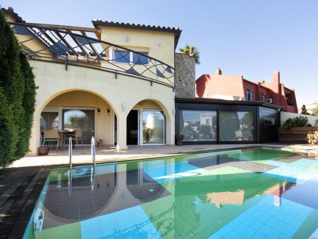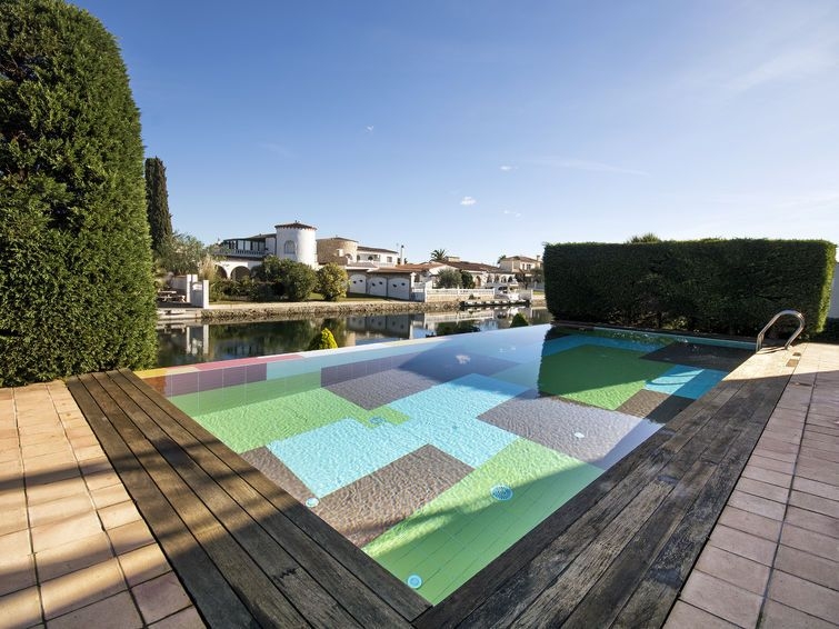 Casa al canal: Casa unifamiliar "Colores", muy amplia, agradable, lujosa de 2 plantas. En el barrio de Alberes, a 1.5 km del centro de Empuriabrava, lugar tranquilo, soleado area residencial (villas), zona con poco tráfico, a 1.6 km del mar, a 1.6 km de la playa, junto al canal. Privado: jardín bonito con césped y plantas, piscina rectangular (8 x 4 m, 34 m2, Disponible por temporada: 01.Ene. - 31.Dic.). Ducha exterior, cenador, terraza, muebles de jardín. En el inmueble: gimnasio, lavadora, secadora. Aparcamiento (para 3 coches) junto a la casa en el mismo terreno. Tienda, tienda de comestibles 350 m, supermercado, restaurante, bar 400 m, panadería 350 m, playa de arena "Empuriabrava" 1.6 km. Puerto deportivo 2 km, campo de golf (18 hoyos) 15 km, minigolf 1 km, centro ecuestre 2 km, rutas de senderismo desde la casa 600 m, caminos para bicicletas 400 m. Atracciones en los alrededores: Centro paracaidismo y túnel del viento 2 km, Parque Acuático Roses 6 km, Museo Dalí Figueres 15 km, Castillo de Perelada 12 km, Ruïnas de St. Martí de Empúries 21 km, Monasterio de Sant Pere de Rodes 23 km. A tener en cuenta: grupos de jóvenes sólo bajo petición. Amarre privado. A tener en cuenta: Piscina desbordante . SAT TV solo HOT BIRD.