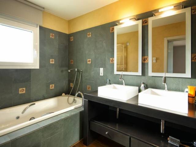 Casa 8 estancias 269 m2 en 2 plantas. Espacioso y luminoso, con mobiliario confortable y lujoso: salón-comedor grande con chimenea, mesa de comedor, TV satélite y TV digital (pantalla plana). Salida a la terraza-jardín, a la piscina. 1 dorm. con 1 cama de matrimonio. 1 dorm. con 1 cama de matrimonio. Oficina con balcón acristalado con TV. Grande cocina abierta (horno, lavavajillas, 5 placas de vitrocerámica, microondas, congelador, cafetera eléctrica, isla de cocina). 2 ducha/WC, WC separado. Planta superior: 1 dorm., grande con Vestidor con 1 cama de matrimonio, ducha/WC y aire acondicionado. Salida a la terraza. 1 dorm. con 1 cama de matrimonio, ducha/WC y aire acondicionado. 1 dorm. con 1 cama de matrimonio, ducha/WC y aire acondicionado. 1 dorm. con 2 camas, ducha/WC y aire acondicionado. Cocina abierta (4 placas de vitrocerámica, cafetera eléctrica). Terraza-jardín, césped, cenador 23 m2. Muebles de terraza, barbacoa (portátil). Vista muy bonita al canal. El alojamiento dispone de: lavadora, secadora, cuna. Internet (Wifi, gratis). Plaza de aparcamiento (3 Coches). A tener en cuenta: amarre privado. Permitido máximo 1 mascota / perro. TV solamente ES, FR, DE. La TV del salón-comedor sólo tiene canales FR y DE. La TV de la oficina con balcón acristalado sólo tiene canales ES. HUTG029151