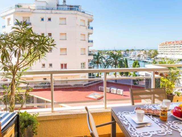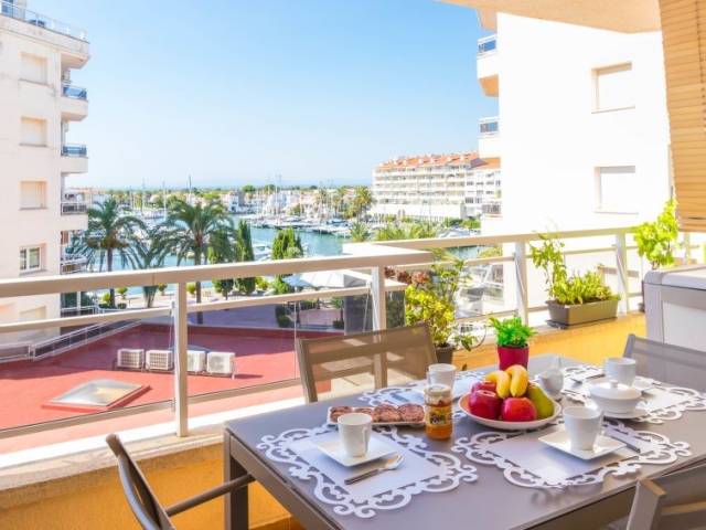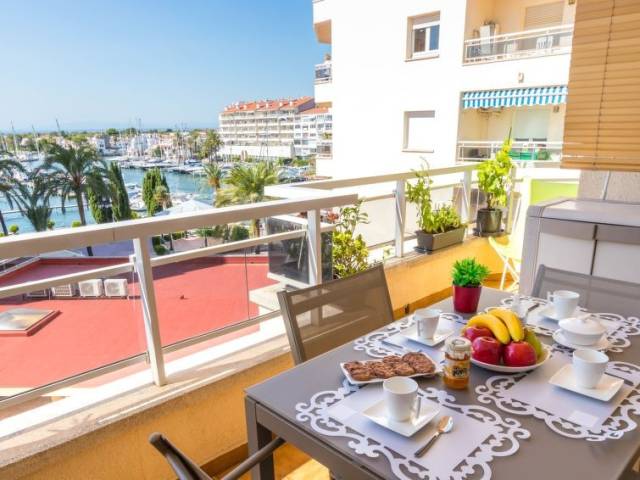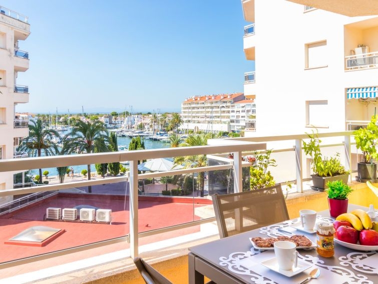 Puerto Nautico: Casa de apartamentos "Club Nautic", agradable, confortable de 6 plantas. En el sector Club Nàutic, a 300 m del centro de Empuriabrava, lugar céntrico, soleado, a 500 m del mar, a 500 m de la playa, orientación sur. En el complejo: restaurante, bar, internet café, sauna, gimnasio (extra). Solarium, ascensor. Parking público. Tienda de comestibles, supermercado 400 m, centro comercial 300 m, restaurante 100 m, bar 50 m, panadería, café 10 m, parada de autobús 3 km, estación de tren "Figueres" 12 km, playa de arena "Empuriabrava" 500 m, centro de buceo 2 km. Puerto deportivo 10 m, campo de golf (18 hoyos) 12 km, escuela de surf 1.5 km, escuela de vela 1.5 km, tenis 3 km, minigolf 1.5 km, centro ecuestre 3 km, polideportivo 50 m, rutas de senderismo desde la casa 2 km, caminos para bicicletas 1.6 km. Atracciones en los alrededores: Centro paracaídismo Skydive 3 km, Túnel del viento 3 km, Parque Acuático Aquabrava Roses 8 km, Museo Dalí Figueres 15 km, Casino y castillo de Peralada 12 km, Ruïnes de Empúries 21 km. Grupos de jóvenes sólo bajo petición. A tener en cuenta: Se pueden reservar alojamientos adicionales. Vecindario muy sensible a ruidos. Se ruega respetar la tranquilidad y normas de buen comportamiento. Apartamento de 3 estancias 60 m2 en el 3° piso, orientación suroeste. Luminoso, completamente reformado en 2011, con mobiliario moderno y agradable: salón-comedor con mesa de comedor, TV satélite, aire acondicionado y bomba de calor, caliente. Salida al balcón. 1 dorm. con 1 cama de matrimonio (150 cm, 190 cm de longitud), aire acondicionado. 1 dorm. con 1 cama de matrimonio (160 cm, 190 cm de longitud). Cocina abierta (horno, lavavajillas, 3 Placas de inducción, microondas, congelador, cafetera eléctrica). Ducha/WC, WC separado. Terraza pequeña 8 m2, orientación sur y orientación oeste. Muebles de terraza. Vista lateral al mar y al canal. El alojamiento dispone de: lavadora, secadora, plancha. Internet (Wifi, gratis). A tener en cuenta: apartamento para no fumadores. TV solamente FR, DE. HUTG029855