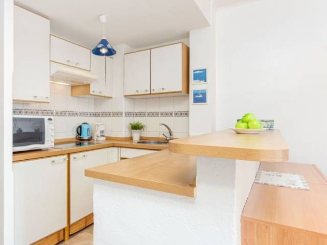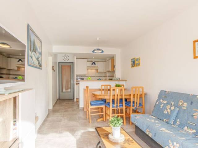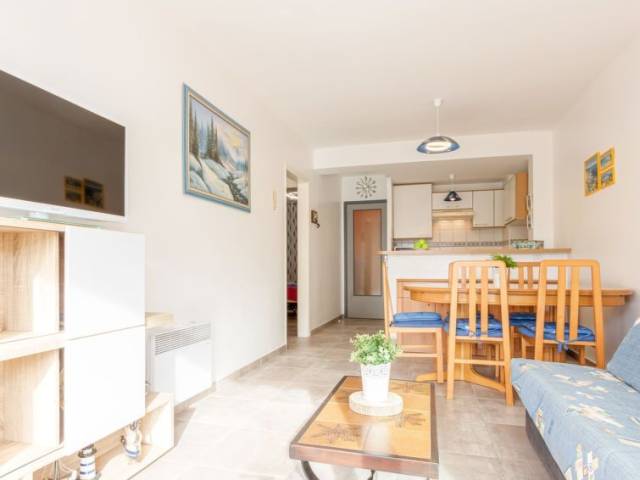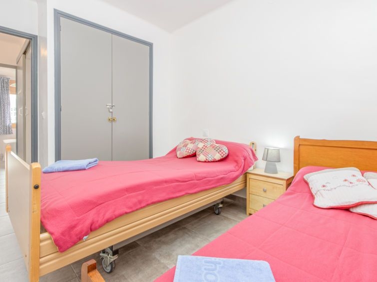Apartamento de 3 estancias 55 m2. Luminoso: salón-comedor con mesa de comedor y TV. Salida a la terraza. 1 dorm. con 1 cama de matrimonio (135 cm, 190 cm de longitud). 1 dorm. con 2 camas (90 cm, 190 cm de longitud). Cocina (lavavajillas, 3 placas de vitrocerámica, tostadora, microondas, cafetera eléctrica) con barra americana. 2 ducha/WC. Ningún tipo de calefacción. Terraza pequeña. Muebles de terraza. Vista panorámica al mar. El alojamiento dispone de: lavadora, plancha. A tener en cuenta: TV solamente FR. La habitacion de dos camas el armario esta cerrado para uso del propietario. HUTG019445
