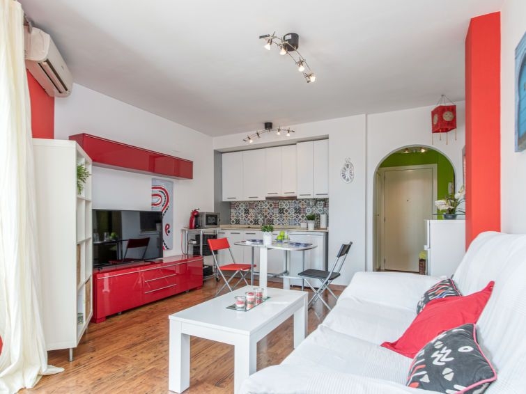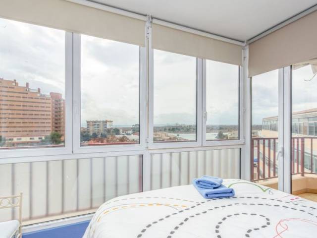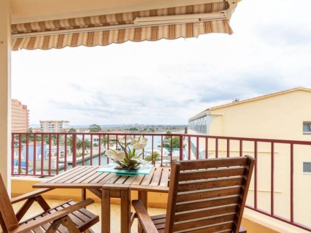 Apartamento de 2 estancias 35 m2 en el 4° piso. Luminoso, con mobiliario bonito y moderno: salón-dormitorio con 1 sofá-cama doble (140 cm, 190 cm de longitud), mesa de comedor, TV digital, aire acondicionado y bomba de calor, caliente. Salida a la terraza, orientación sur y orientación oeste. 1 dorm. con 1 cama de matrimonio (140 cm, 190 cm de longitud), aire acondicionado y bomba de calor, caliente. Cocina abierta (2 placas de vitrocerámica, tostadora, hervidor de agua eléctrico, microondas, cafetera eléctrica). Ducha/WC. Terraza 8 m2, orientación sur y orientación oeste. Muebles de terraza. Vista muy bonita al mar y al canal. El alojamiento dispone de: plancha, cuna, secador de pelo. Internet (Wifi, gratis). A tener en cuenta: apartamento para no fumadores. TV solamente ES. HUTG064889