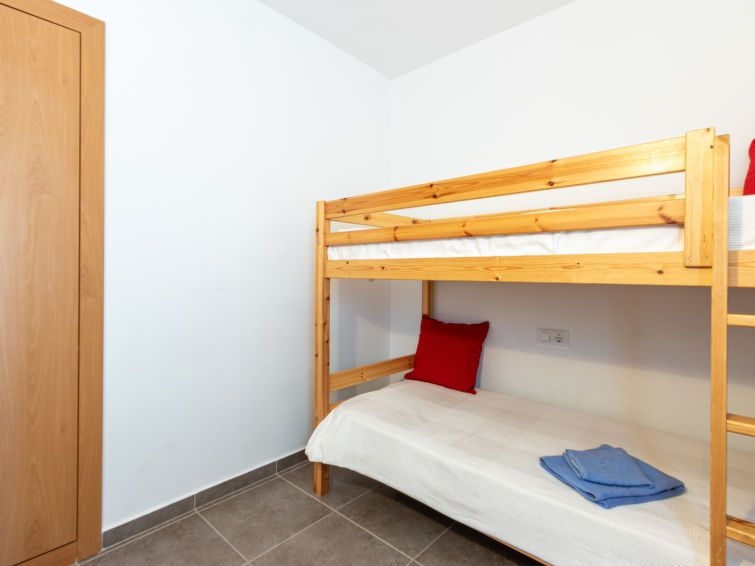 Santa Margarita: Casa de apartamentos "Cap Mestral", amplio, moderno, agradable de 5 plantas. En el barrio de Santa Margarita, a 3 km del centro de Roses, lugar tranquilo, soleado, zona con poco tráfico, a 900 m del mar, a 900 m de la playa, junto al canal, en una calle sin salida, orientación suroeste. Comunitario: jardín grande, bonito, cuidado (vallado) con césped, 3 piscinas (100 m2, Disponible por temporada: 01.Jun. - 30.Sep.). En el inmueble: ascensor. Aparcamiento, garaje comunitario. Tienda de comestibles, supermercado 500 m, centro comercial 1 km, restaurante, bar 500 m, parada de autobús 1 km, playa de arena "Santa Margarita" 900 m, centro de buceo 1 km. Puerto deportivo 4 km, tenis 1 km, minigolf 1 km. Atracciones en los alrededores: Parque Acuático Aquabrava Roses 1.5 km, Túnel del viento y Skydive Empuriabrava 5.6 km, Museo Dalí Figueres 19 km, Castillo y festival de Perelada 20 km, Monasterio de Sant Pere de Rodes 19 km, Ruinas de St. Martí de Empuries 27 km. A tener en cuenta: adecuado para familias. Apartamento de 3 estancias 52 m2 en el 2° piso, orientación suroeste. Con mobiliario moderno: salón-comedor con 1 sofá-cama doble, TV satélite, TV digital y pantalla plana. Salida al balcón. 1 dorm. con 1 cama de matrimonio (135 cm). Salida al balcón. 1 dorm. con 1 x 2 literas (90 cm). Cocina abierta (3 fogones, horno, lavavajillas, microondas, congelador). Ducha/WC. Ningún tipo de calefacción. Balcón 12 m2. Muebles de terraza. Vista panorámica espléndida a la piscina, al paisaje y al canal. El alojamiento dispone de: lavadora. Plaza de aparcamiento n. 29 (cubierto). A tener en cuenta: TV solamente ES, DE. HUTG003079