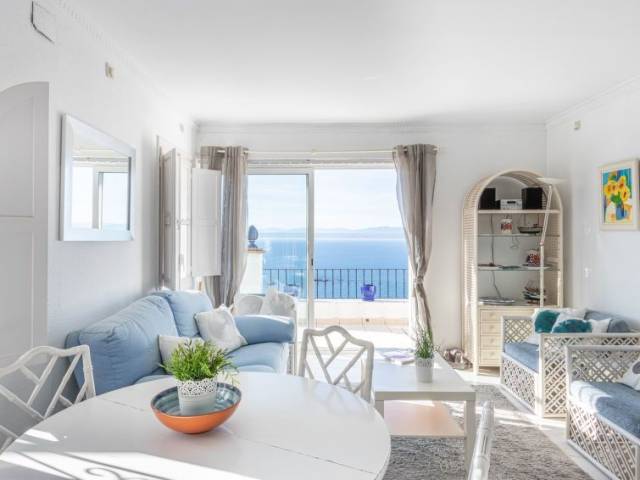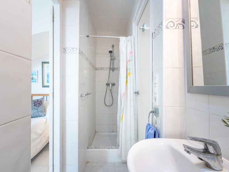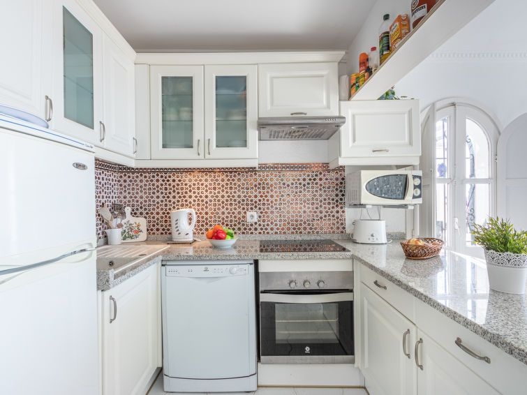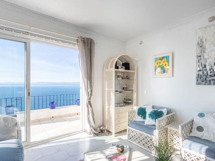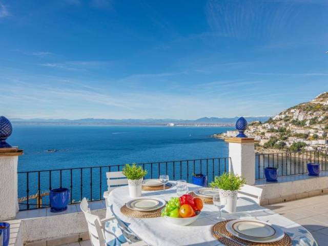 Canyelles Petites: Obligatorio: mandar por email nombres, apellidos y edad de todos los ocupantes para el control de piscina. Casa adosada "Casas Blancas", de 2 plantas, adosada por un lado. 13 casas en la residencia. Canyelles Petites, en la localidad, a 3.5 km del centro de Roses, lugar tranquilo, soleado, elevado en una pendiente, area residencial (villas), a 850 m del mar, a 850 m de la playa, orientación suroeste. Comunitario: piscina en forma de riñon (14 x 5 m, 140 - 180 cm de profundidad, Disponible por temporada: 01.Jun. - 30.Sep. horario piscina: 09:00-21:00). Acceso muy empinado. Acceso por escaleras (36 escalones) hasta la casa. Tienda, tienda de comestibles, supermercado, restaurante, bar, café, parada de autobús 850 m, playa de arena "Canyelles Petites" 850 m. Puerto deportivo 3 km, puerto para yates 3.5 km, campo de golf (18 hoyos) 20 km, escuela de surf 3.5 km, escuela de vela 3.5 km, tenis 5 km, centro ecuestre 10 km. Atracciones en los alrededores: Parque Acuático Aquabrava Roses 6 km, Skydive y túnel del viento Empuriabrava 11 km, Cadaqués 18 km, Castillo y casino de Perelada 25 km, Monasterio de Sant Pere de Rodes 24 km, Museo Dalí Figueres 24 km. A tener en cuenta: coche recomendable, sin ascensor. El propietario no acepta grupos de adolescentes/jóvenes. Vecindario muy sensible a ruidos. Se ruega respetar la tranquilidad y normas de buen comportamiento. "Madreselva", casa adosada 4 estancias 75 m2 en 2 plantas, orientación suroeste. Luminoso: salón-comedor con mesa de comedor y TV satélite. Salida a la terraza, orientación sur y orientación oeste. Cocina abierta (horno, lavavajillas, 4 placas de vitrocerámica, microondas, congelador, cafetera eléctrica) con barra americana. WC separado. Ningún tipo de calefacción. En planta inferior: 1 dorm., grande con 1 cama de matrimonio (140 cm, 190 cm de longitud), rincón-comedor y ducha/WC. 1 dorm. con 1 cama de matrimonio (140 cm, 190 cm de longitud). 1 dorm. para niños con 2 camas (90 cm, 190 cm de longitud). Ducha/WC. Terraza grande 20 m2, orientación sur y orientación oeste terraza 12 m2. Muebles de terraza. Vista panorámica espléndida al mar. El alojamiento dispone de: lavadora, plancha, secador de pelo. Internet (Wifi, gratis). A tener en cuenta: TV solamente DE, ES, FR. HUTG-056717