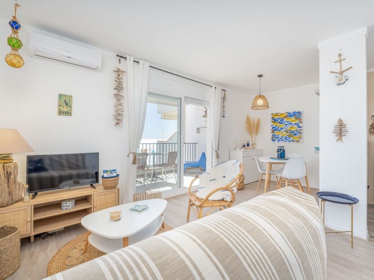 "Casa Do", apartamento de 3 estancias 63 m2 en 2 plantas, orientación sur. Luminoso, reformado en 2022, con mobiliario agradable: 1 dorm. con 1 cama de matrimonio (140 cm, 190 cm de longitud), TV. 1 dorm. con 2 camas (90 cm, 190 cm de longitud). Ducha/WC, WC separado. Calentador (50 litros). En planta inferior: salón-comedor con mesa de comedor, TV, aire acondicionado y bomba de calor, caliente. Salida al balcón, orientación sur. Cocina abierta (lavavajillas, 3 placas de vitrocerámica, tostadora, hervidor de agua eléctrico, microondas, congelador, cafetera eléctrica). Terraza 15 m2, orientación sur. Muebles de terraza, barbacoa. Vista espléndida al mar. El alojamiento dispone de: lavadora, plancha, secador de pelo. Internet (Wifi, gratis). A tener en cuenta: apartamento para no fumadores. TV solamente FR. Sin ascensor. HUTG-069776