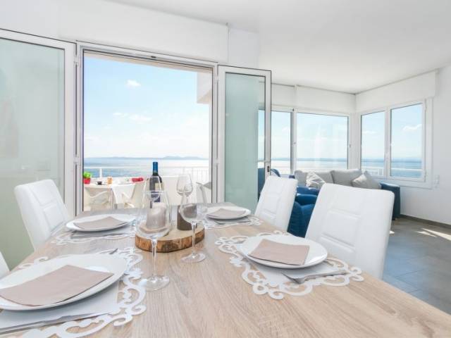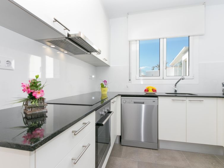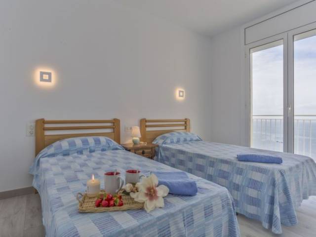 Casa 4 estancias 118 m2 en 2 plantas, orientación suroeste. Completamente reformada en 2019, con mobiliario moderno y de estilo: salón-comedor con ventanal con 1 sofá-cama, mesa de comedor, TV digital, pantalla plana, aire acondicionado, bomba de calor, caliente y persianas eléctricas. Salida a la terraza, orientación sur y orientación oeste. Cocina (lavavajillas, 3 Placas de inducción, microondas, congelador, cafetera eléctrica). WC separado. En planta inferior: 1 dorm. con 1 cama de matrimonio. Salida a la terraza, orientación sur y orientación oeste. 1 dorm. con 2 camas. Salida al balcón. 1 dorm. con 1 cama (110 cm, 190 cm de longitud). Baño/WC. Terraza pequeña 10 m2, orientación sur y orientación oeste. Muebles de terraza. Vista panorámica espléndida al mar y al paisaje. El alojamiento dispone de: lavadora. Internet (Wifi, gratis). Garaje. A tener en cuenta: TV solamente ES. HUTG028994