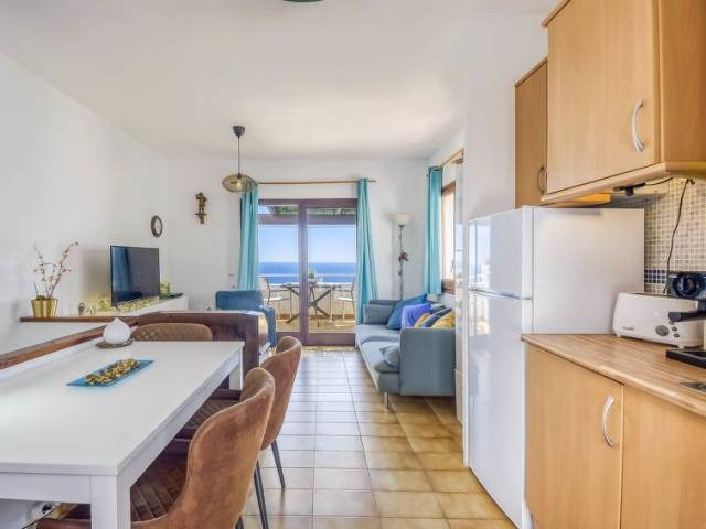 Casa adosada 3 estancias 50 m2 en 2 plantas. Con mobiliario sencillo: salón-comedor 10 m2, pequeño con mesa de comedor. Salida a la terraza. Rincón-cocina en la entrada (2 fogones, tostadora, microondas, congelador, cafetera eléctrica). En planta inferior: 1 dorm. con 1 cama de matrimonio (135 cm). Salida al balcón. 1 dorm. con 1 cama de matrimonio (135 cm). Ducha/WC. Ningún tipo de calefacción. Balcón 6 m2. Vista panorámica espléndida al mar. El alojamiento dispone de: plancha, secador de pelo. Internet (Wifi, gratis). Plaza de aparcamiento n. 47. Debido a diferentes problemas de conectividad , la TV no estara disponible. HUTG-010246