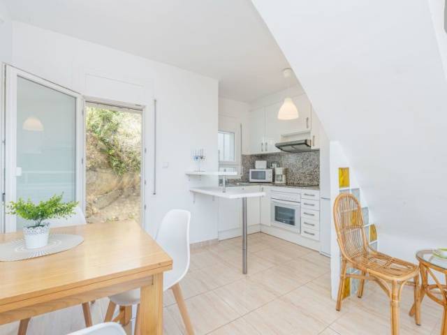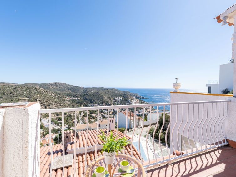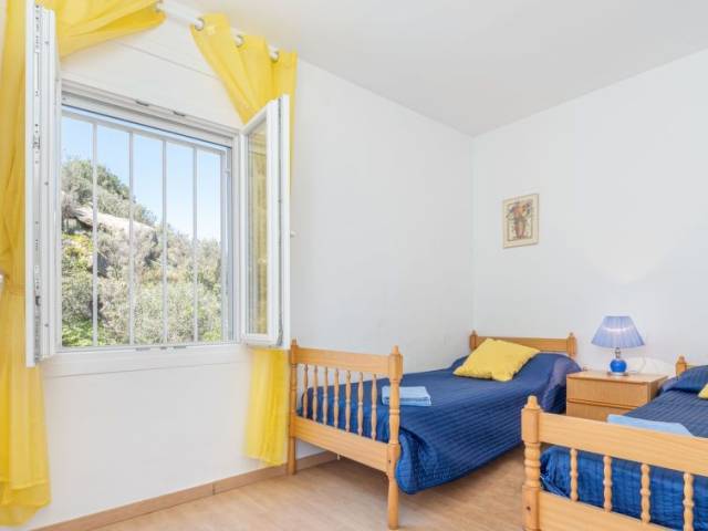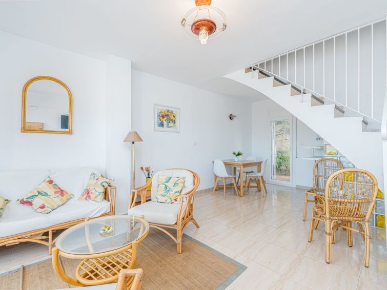 Puig Rom: Casa adosada "Prisange", de 2 plantas. A 2.4 km del centro de Roses, lugar tranquilo, soleado en una colina, area residencial (villas), zona con poco tráfico, a 2 km del mar, a 2 km de la playa. Acceso por escaleras (15 escalones) hasta la casa. Supermercado 2.5 km, restaurante 2.4 km, bar 1.5 km, parada de autobús 2 km, estación de tren "Figueres" 15 km, playa de arena "Canyelles petites" 2.1 km, piscina cubierta 3 km, cala para bañarse 2.1 km. Puerto deportivo 2.5 km, campo de golf (18 hoyos) 15 km, tenis 3 km, caminos para bicicletas 1 km. Atracciones en los alrededores: Parque Acuático Aquabrava Roses 6 km, Centro paracaidismo y túnel del viento 11 km, Museo Dalí Figueres 23 km, Casino y festival de Peralada 24 km, Monaterio Sant Pere de Rodes 24 km, Cadaqués 17 km. A tener en cuenta: coche recomendable, sin ascensor.