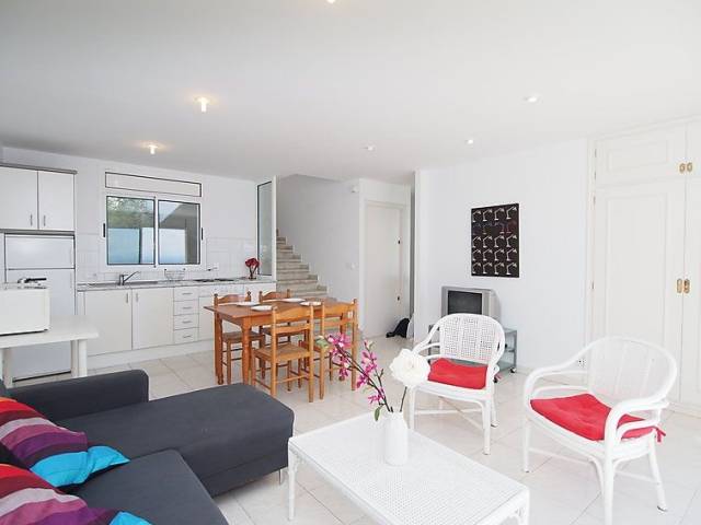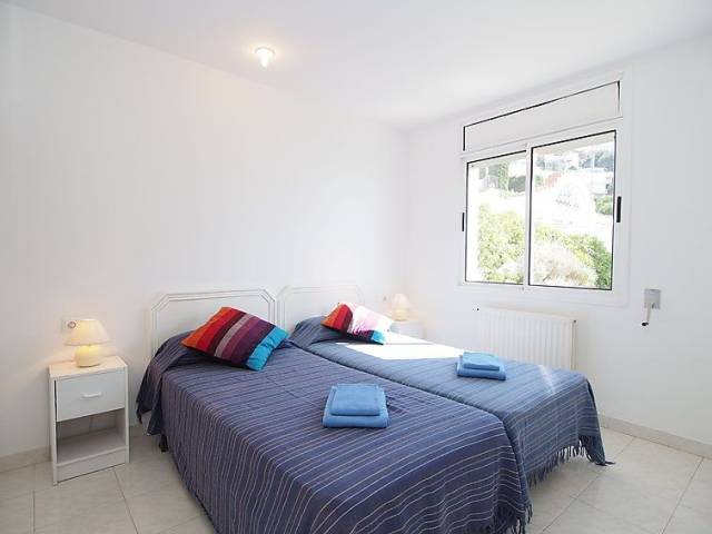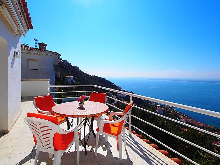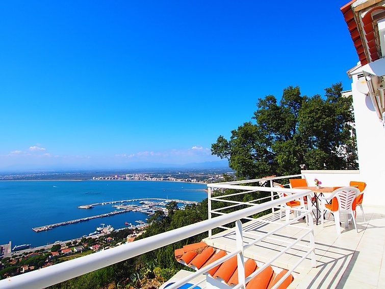 Puig Rom: Casa de dos viviendas "Prudenci". A 3 km del centro de Roses, lugar tranquilo, soleado en una colina, area residencial (villas), zona con poco tráfico, a 3 km del mar, a 2 km de la playa, en una calle sin salida. Acceso por escaleras (15 escalones) hasta la casa. Supermercado 3 km, restaurante 3 km, bar 1.5 km, parada de autobús 2 km, estación de tren "Figueres" 15 km, playa de arena "Canyelles petites" 3 km, piscina cubierta 3 km, cala para bañarse 3 km. Puerto deportivo 3 km, campo de golf 15 km, tenis 3 km. Atracciones en los alrededores: Parque Acuático Aquabrava Roses 6 km, Centro paracaidismo y túnel del viento 11 km, Museo Dalí Figueres 23 km, Casino y festival de Peralada 24 km, Monaterio Sant Pere de Rodes 24 km, Cadaqués 17 km. A tener en cuenta: coche recomendable. Apartamento de 3 estancias 60 m2 en el 1° piso, orientación sureste. Luminoso, con mobiliario funcional y confortable: salón-comedor con TV satélite. 1 dorm. con 2 camas. 1 dorm. con 1 cama de matrimonio. Cocina abierta (4 fogones, microondas). Baño/bidet/WC. Ningún tipo de calefacción. Terraza. Muebles de terraza. Vista panorámica espléndida al mar y a las montañas. A tener en cuenta: TV solamente FR. HUTG010789