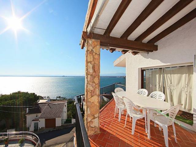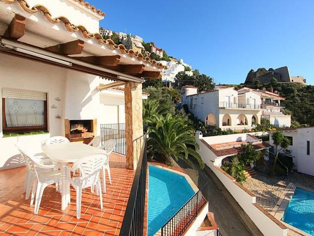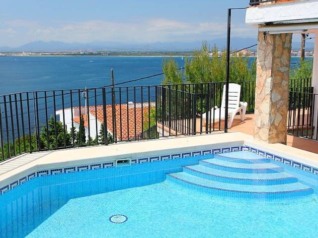 Casa "Joan Sarda", de 3 plantas. En el barrio de Els Balins, a 1.5 km del centro de Roses, lugar tranquilo, soleado en una pendiente, zona con poco tráfico, a 300 m del mar. Privado: piscina (5 x 6 m, 120 cm de profundidad, Disponible por temporada: 01.Jun. - 30.Sep.). Terraza, muebles de jardín. En el inmueble: Wifi, lavadora. Acceso por escaleras hasta la casa. Aparcamiento (para 2 coches). Tienda de comestibles 400 m, supermercado 1 km, restaurante 1 km, bar 1 km, café 500 m, playa de arena "Palangres", cala para bañarse 300 m. Puerto deportivo 1 km, campo de golf (12 hoyos) 15 km, tenis 4 km, minigolf 4 km. Atracciones en los alrededores: Parque Acuático Aquabrava Roses 4 km, Túnel del viento y Skydive Empuriabrava 6 km, Cadaqués 16 km, Castillo y festival de Peralada 23 km, Museo Dalí Figueres 21 km, Monasterio de Sant Pere de Rodes 23 km. A tener en cuenta: coche recomendable. Grupos de jóvenes sólo bajo petición. Casa 5 estancias 130 m2 en 3 plantas. Entrada. 1 dorm. con 1 cama de matrimonio. Ducha/WC. Calefacción. Planta superior: salón-comedor con chimenea y TV. Salida a la terraza. 1 dorm. con 1 cama de matrimonio. 1 dorm. con 2 camas. Cocina abierta (horno, lavavajillas, microondas). Baño/bidet/WC. Planta superior 2: 1 dorm. con 1 cama de matrimonio. Salida a la terraza. Terraza 5 m2, terraza 15 m2. Muebles de terraza. Vista espléndida al mar. El alojamiento dispone de: lavadora. Internet (Wifi, gratis). Garaje (2 Coches). A tener en cuenta: 1 mascota / perro. TV solamente ES. HUTG010542