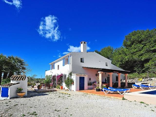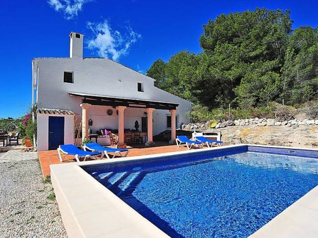 Teulada/Moraira: Casa "Fonsala", de 2 plantas, del siglo 19°, reformada. En el barrio de Teulada, lugar aislado, tranquilo, soleado, a 9 km del mar. Privado: terreno 2'500 m2, piscina rectangular (8 x 4 m, 140 - 200 cm de profundidad, Disponible por temporada: 01.Ene. - 31.Dic.) con escalera interior. Barbacoa, aparcamiento (para 3 coches) en el mismo terreno. A tener en cuenta: coche recomendable. Adecuado para familias, adecuado para la tercera edad.