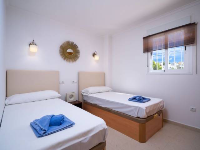 "Montecala", apartamento de 3 estancias 55 m2 en el 1° piso. Con mobiliario agradable: salón-comedor con TV satélite, canales internacionales, pantalla plana y aire acondicionado. Salida a la terraza. 1 dorm. con 2 camas (90 cm, 200 cm de longitud), aire acondicionado. 1 dorm. doble con 1 cama doble (1 x 160 cm, 200 cm de longitud), aire acondicionado. Cocina abierta (horno, lavavajillas, 4 placas de vitrocerámica, hervidor de agua eléctrico, congelador, cafetera eléctrica). Baño/bidet/WC. Ningún tipo de calefacción. Terraza. Muebles de terraza. Vista bonita al mar y al paisaje. El alojamiento dispone de: lavadora, plancha, cuna hasta 2 años, secador de pelo. Internet (Wifi, gratis). A tener en cuenta: apartamento para no fumadores. VT-494977-A