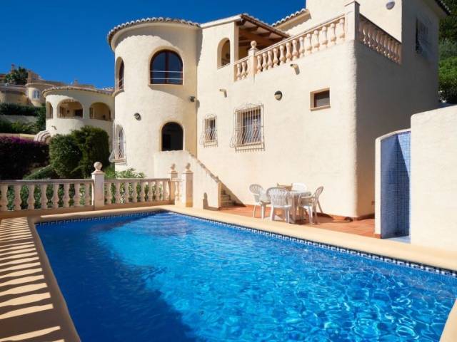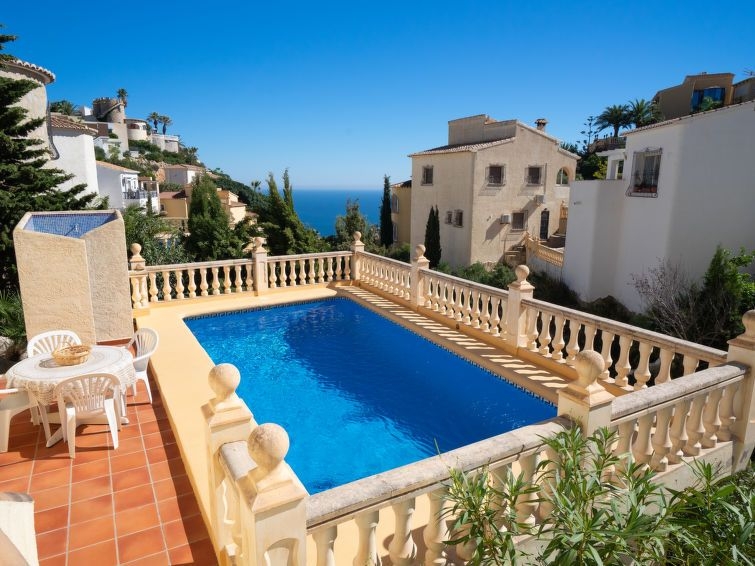 Benitachell: Casa confortable de 2 plantas. Lugar soleado en una colina, a 5.5 km del mar, a 5.5 km de la playa. Privado: terreno, jardín natural, piscina rectangular (4 x 8 m, 120 - 190 cm de profundidad, Disponible por temporada: 01.Ene. - 31.Dic.) con escalera interior. Ducha exterior. Supermercado 3.8 km, playa de arena "Playa de la Ampolla" 7.8 km playa de gravilla "Cala Moraig" 5.5 km (pequeña). A tener en cuenta: coche recomendable.
