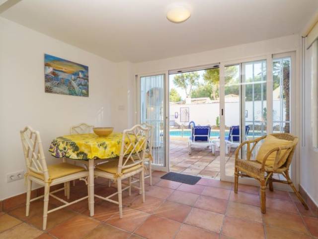 Casa "Villa Paradise", idónea para niños, muy bonita, agradable de 2 plantas, reformada en 2015. A 1 km del centro de Moraira, lugar tranquilo, soleado, a 900 m del mar, a 900 m de la playa. Privado: terreno 850 m2 (vallada), jardín bonito, cuidado, piscina en forma de riñon, occulta desde el exterior (10 x 5 m, Disponible por temporada: 01.Ene. - 31.Dic.) con escalera interior. Ducha exterior, casita de piscina con nevera. En el inmueble: aire acondicionado. Aparcamiento (para 2 coches) en el mismo terreno. Tienda 2 km, supermercado 2 km, restaurante, bar 200 m, playa de arena "Playa L'Ampolla" 1 km. A tener en cuenta: coche recomendable. Adecuado para familias, adecuado para la tercera edad. Primera planta cerrada y no ocupada. Una parte de la casa está cerrada e inocupada.