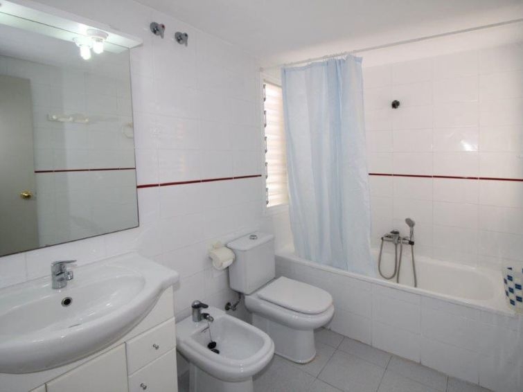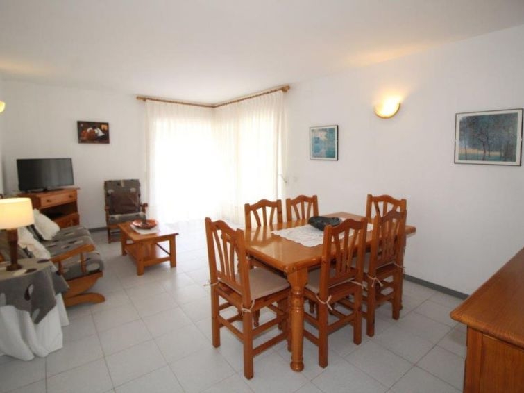 "Open Pals playa", apartamento de 4 estancias en el 2° piso. Luminoso, con mobiliario funcional y confortable: salón-comedor con TV digital. Salida a la terraza. 2 dorm., cada habitación con 2 camas (90 cm, 190 cm de longitud). 1 dorm. con 1 cama doble (2 x 90 cm, 190 cm de longitud). Cocina (horno, lavavajillas, 4 placas de vitrocerámica, tostadora, microondas). Baño/bidet/WC, media bañera/WC. Ningún tipo de calefacción. Terraza pequeña. Muebles de terraza. Vista a la piscina y a la localidad. El alojamiento dispone de: lavadora, cuna hasta 2 años. Garaje n. 7. 1 mascota / perro. HUTG-017600